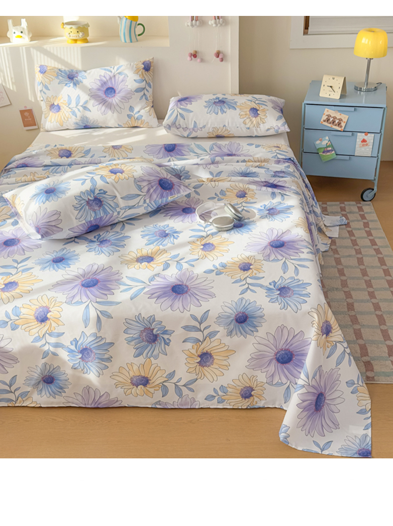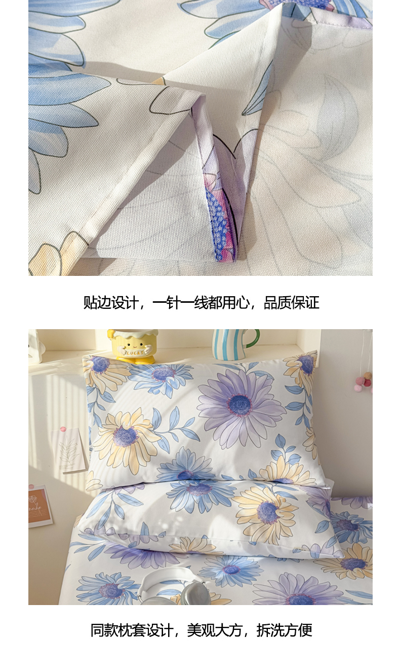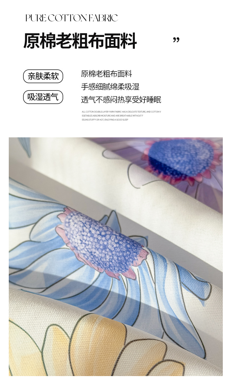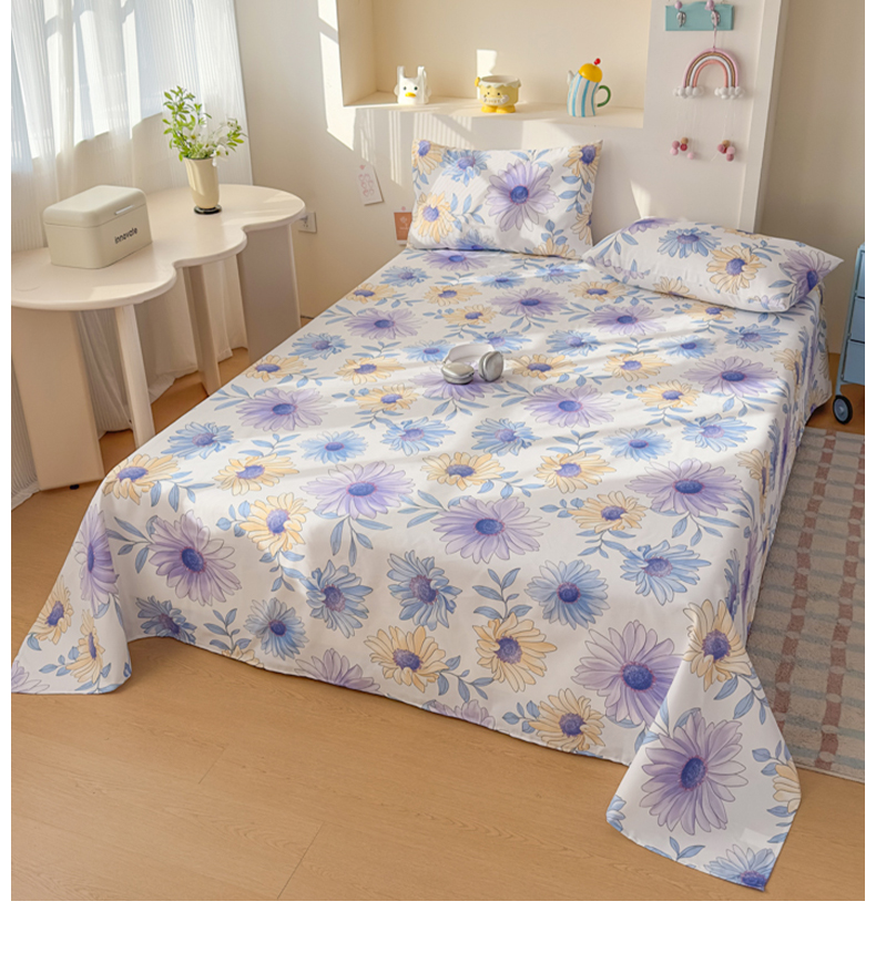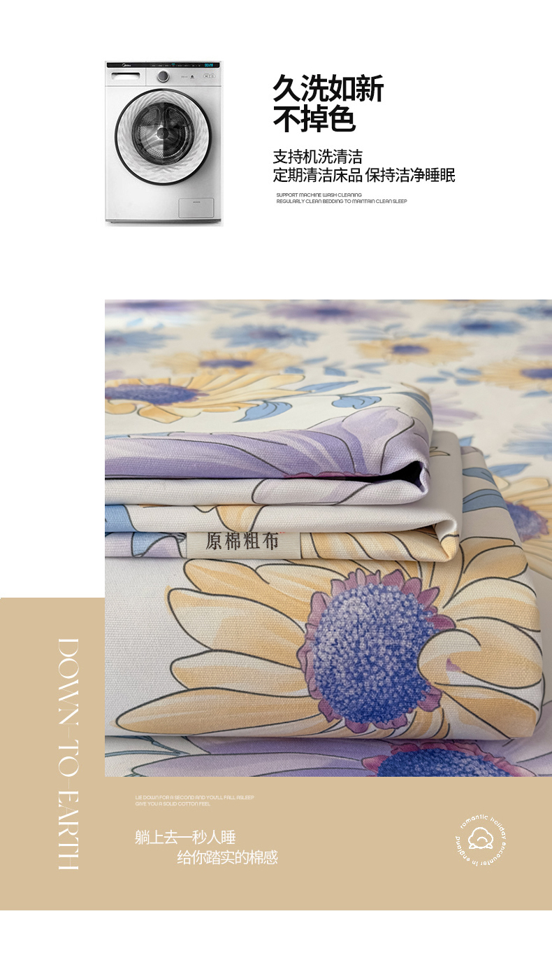 • 91家纺网 家纺一手货源 找家纺 爱彼家纺 2026夏季新款亲肤原棉老粗布透气印花床单单件热门热门床单款新升级-细沙老粗布 蓝菊绘