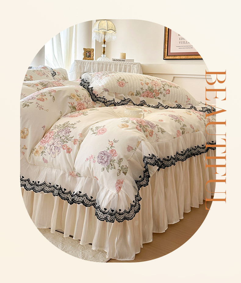 (总)恋尚 2026新款全棉纯棉蕾丝印花床笠裙四件套,芙微,花蝶语,花牺,蔓朵,浅栀,夏瑶,向朵,寻芳朵朵,荨花