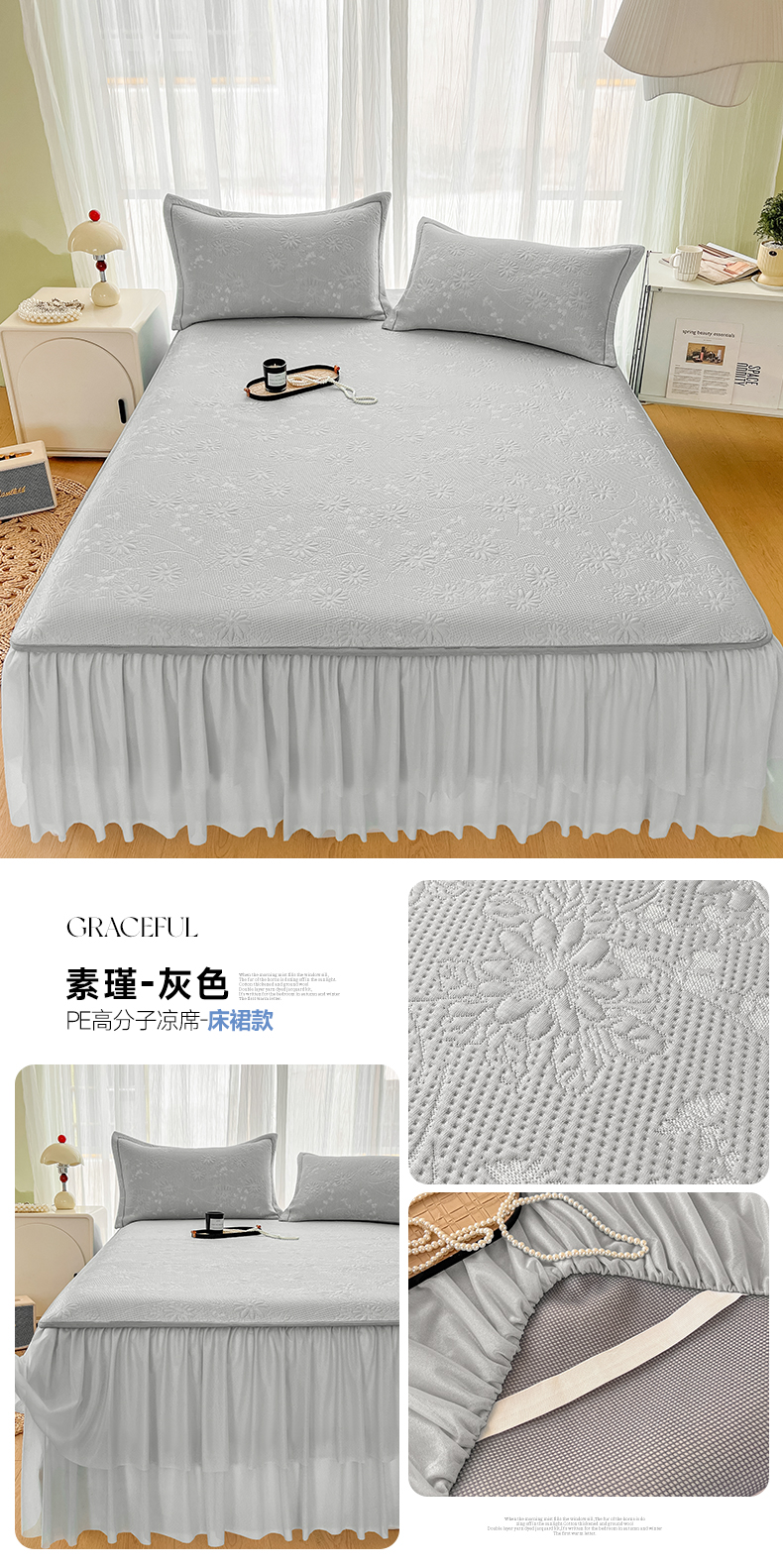 (总)库里梦家纺 2026新款高克重复合蕾丝花边PE高分子凉席-床裙款,芳菲-粉色,芳菲-灰色,芳菲-蓝色,芳菲-绿色,素瑾-粉色,素瑾-灰色,素瑾-蓝色,素瑾-绿色