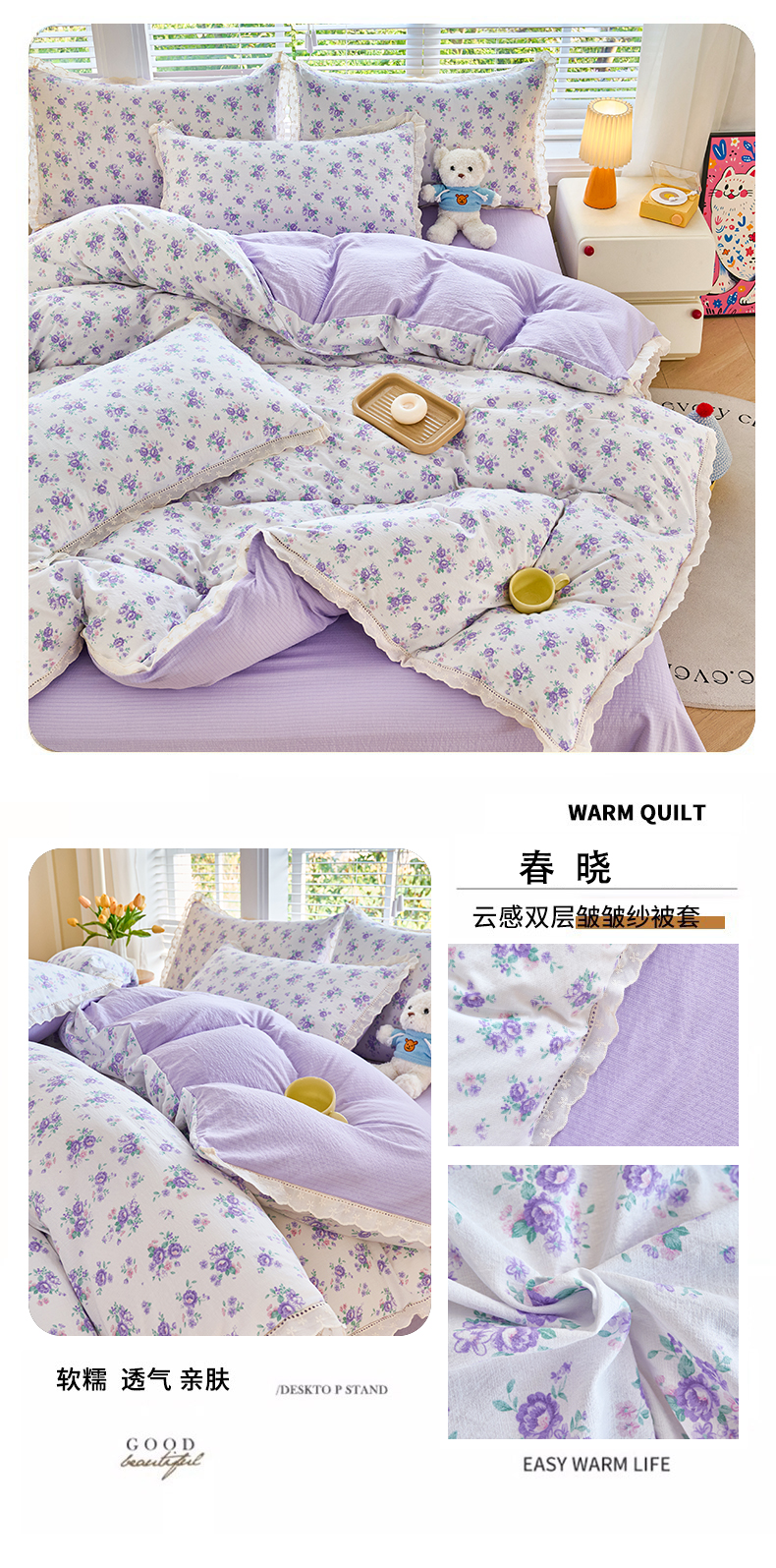 当前位置: 91家纺网 > 商品网购 > 床品套件 > 四件套 > 其它四件套 > 钰锦珀家纺 2026春夏新款云感皱皱纱镂空花边三件套四件套 洛克庄园