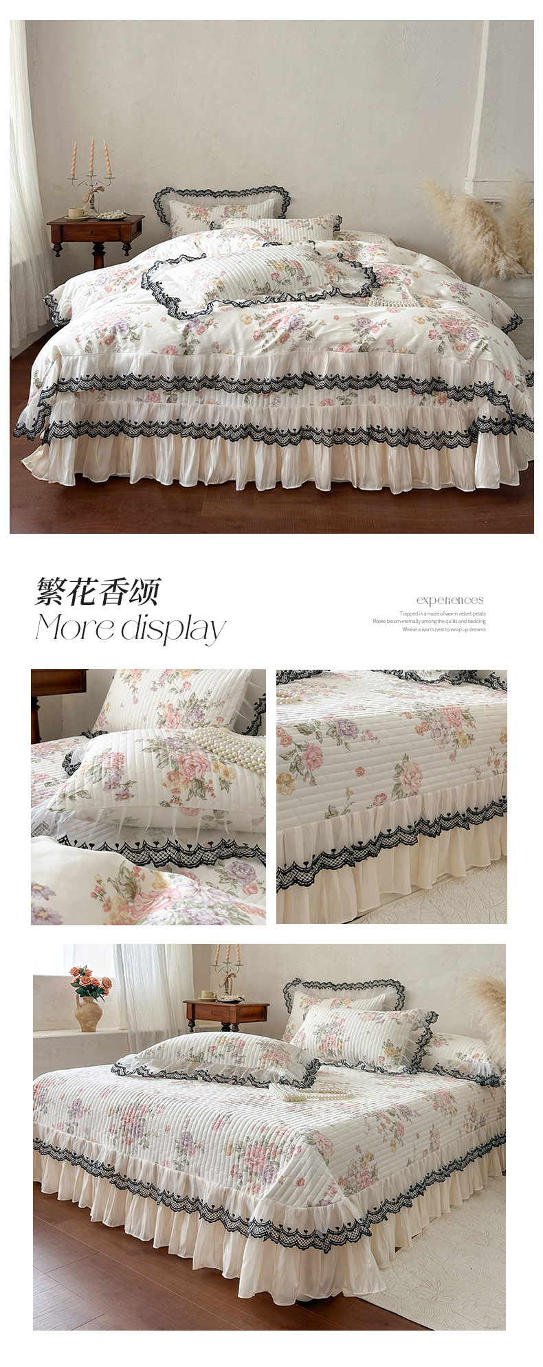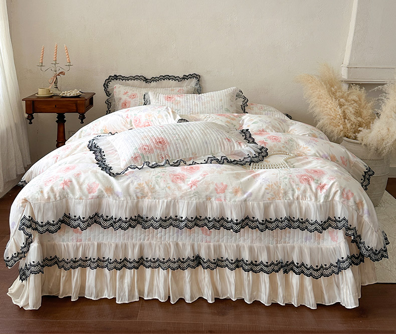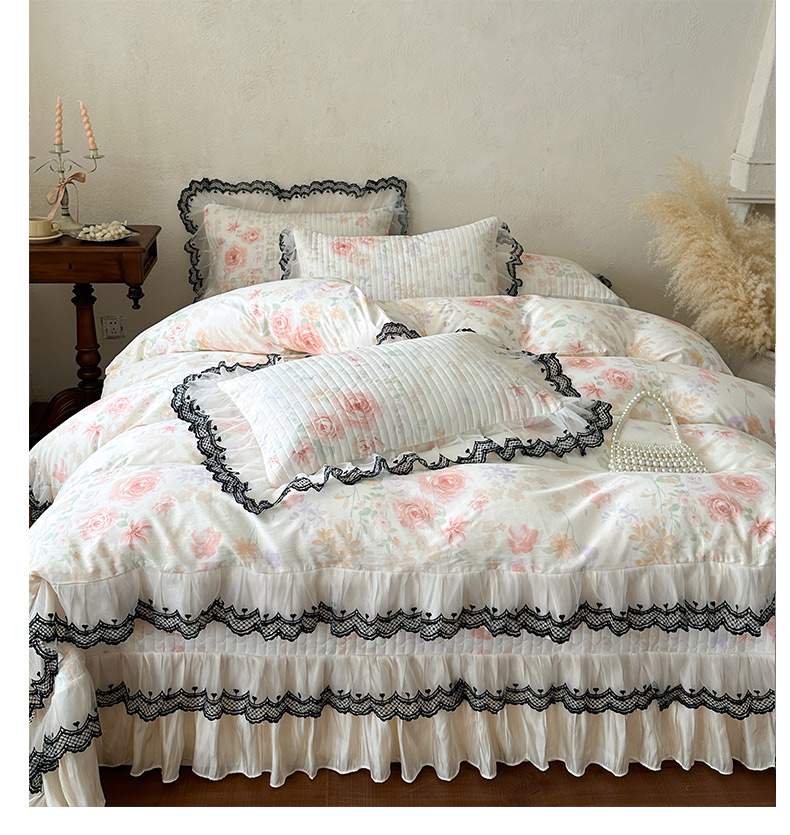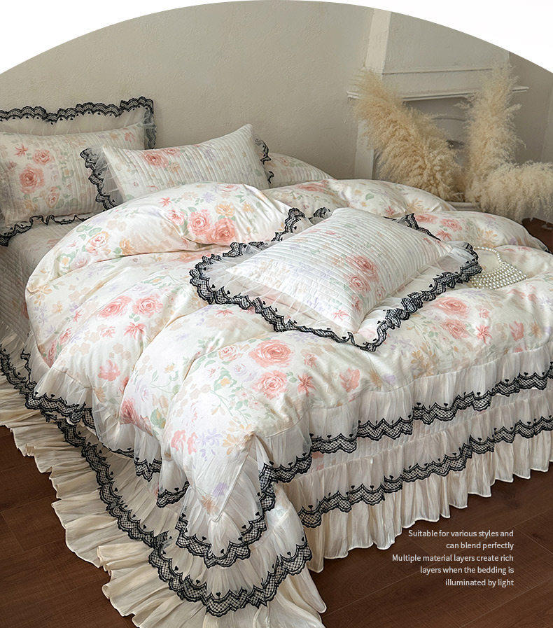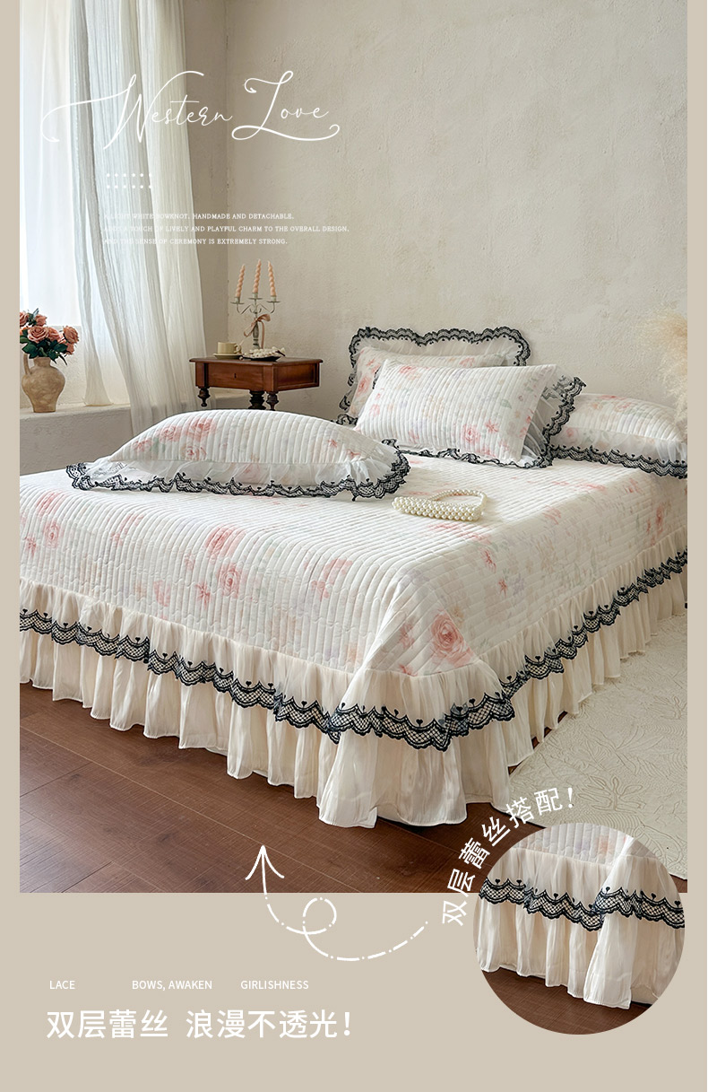 (总)恋尚 2026新款全棉纯棉蕾丝印花床笠裙四件套,芙微,花蝶语,花牺,蔓朵,浅栀,夏瑶,向朵,寻芳朵朵,荨花
