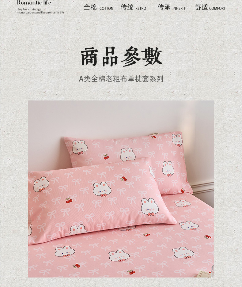 (总)春皖家纺 2026新款全棉老粗布工艺款单枕套枕套单件,百年约,茶心,晨曦-蓝,春满园,春晓米,春意浓,翠林音,繁华,风信咖,可爱熊,快乐熊,快乐园,浪漫紫,卢卡,玫瑰情,蘑菇兔,浅韵-白,浅韵-绿,倩影米,沁香蓝,轻舞,如梦黄,田园梦,兔开心,夏日炽,幸运,幸运熊,绚烂,伊兰,逸云,枝丫,织梦