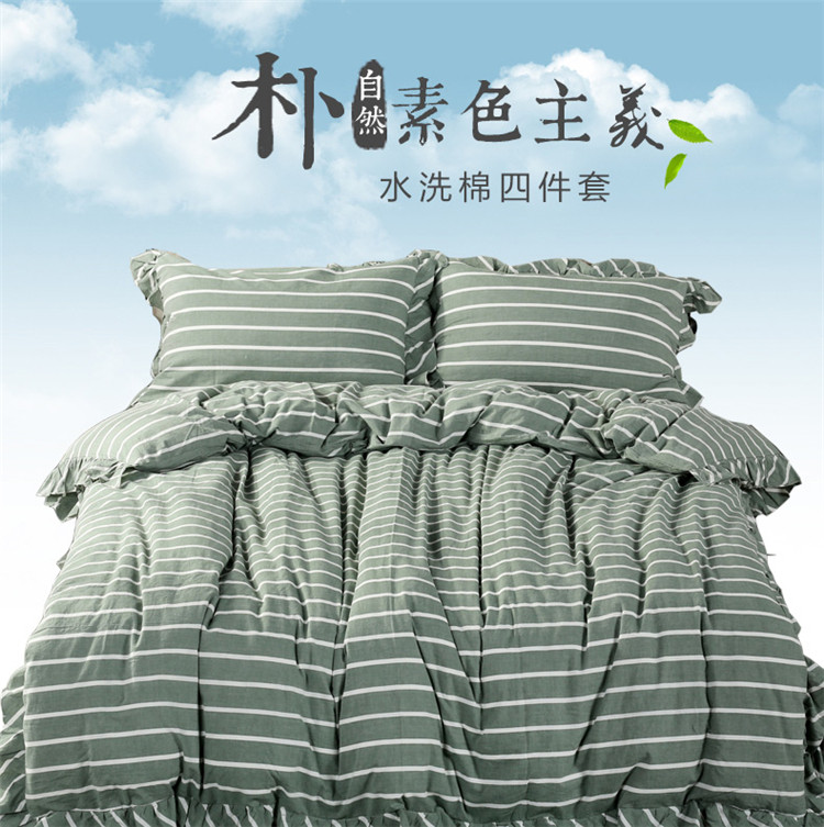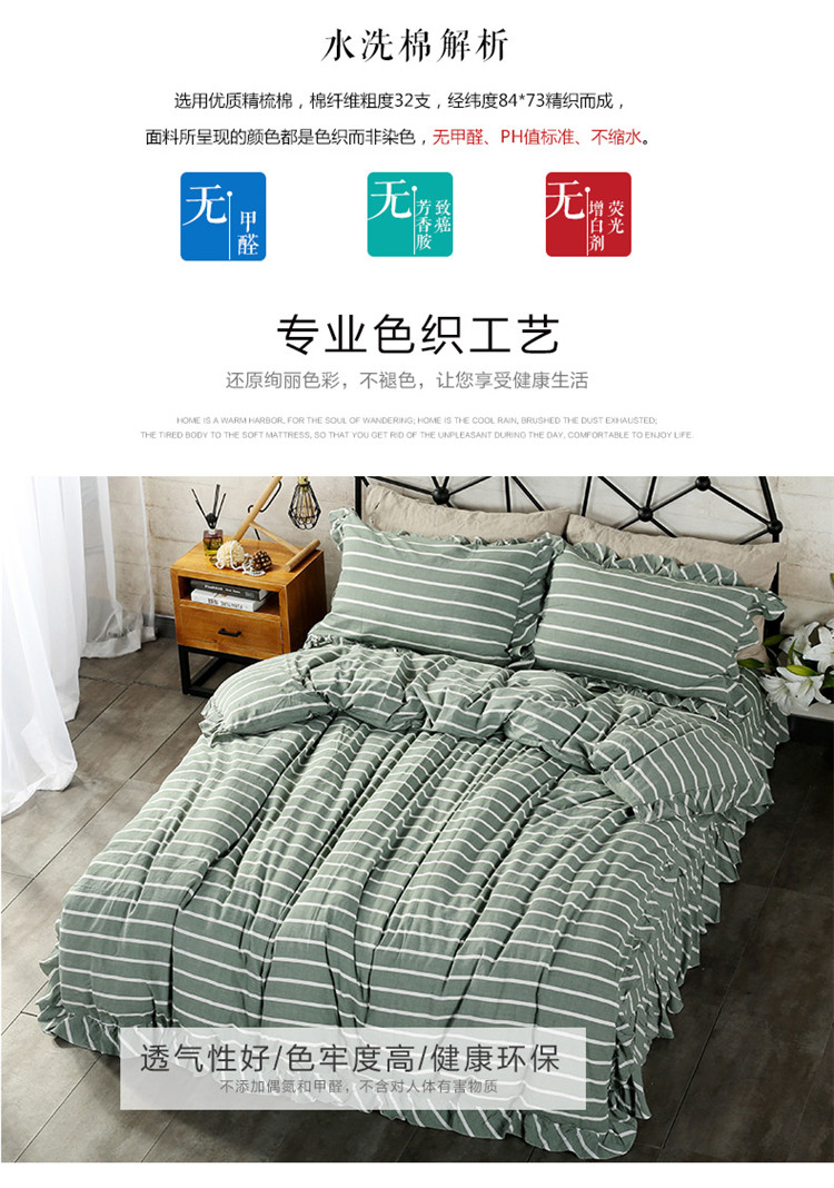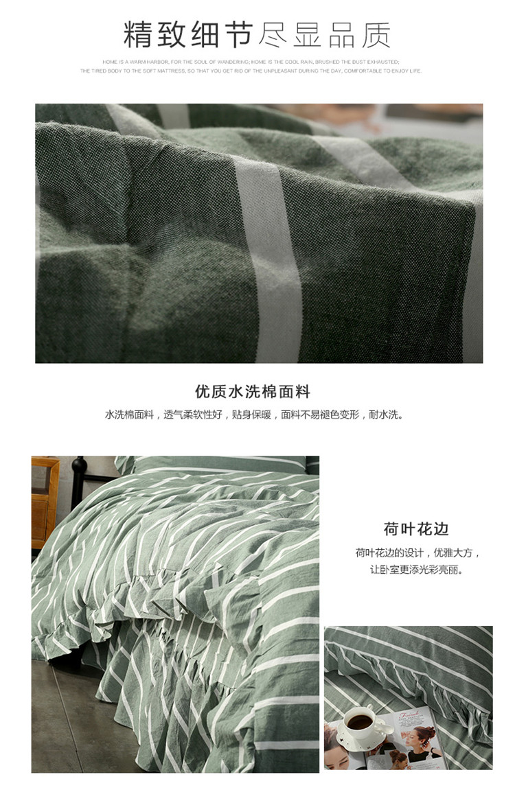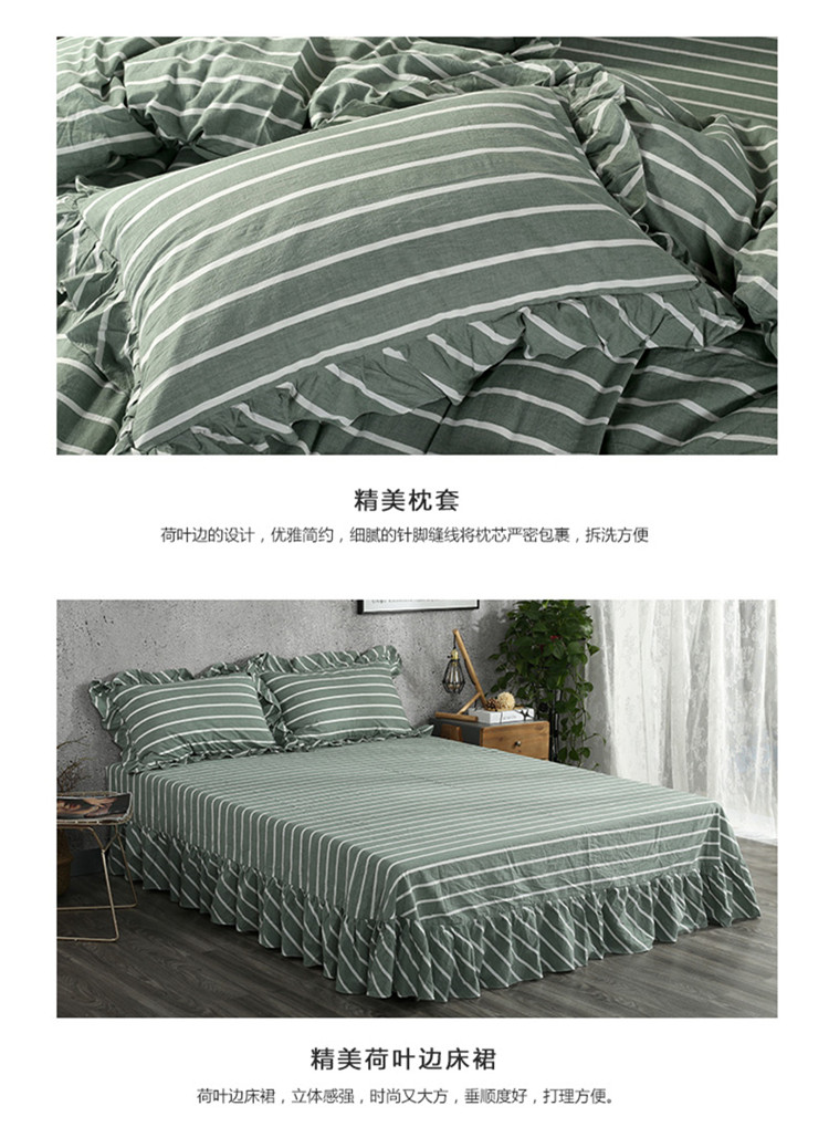 商品名称:福丽莱 全棉色织水洗棉四件套1.8m床(床裙款)莫妮卡-绿