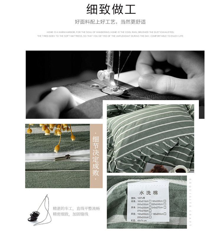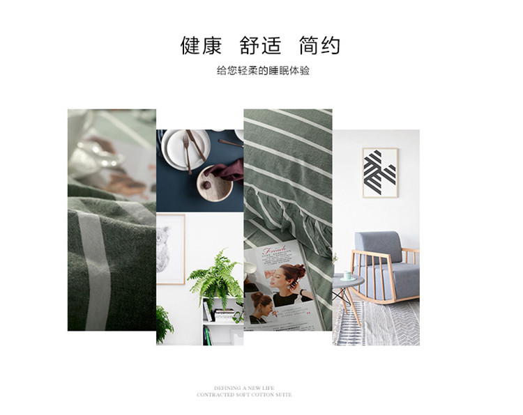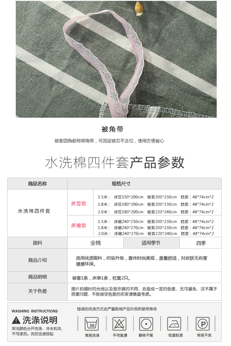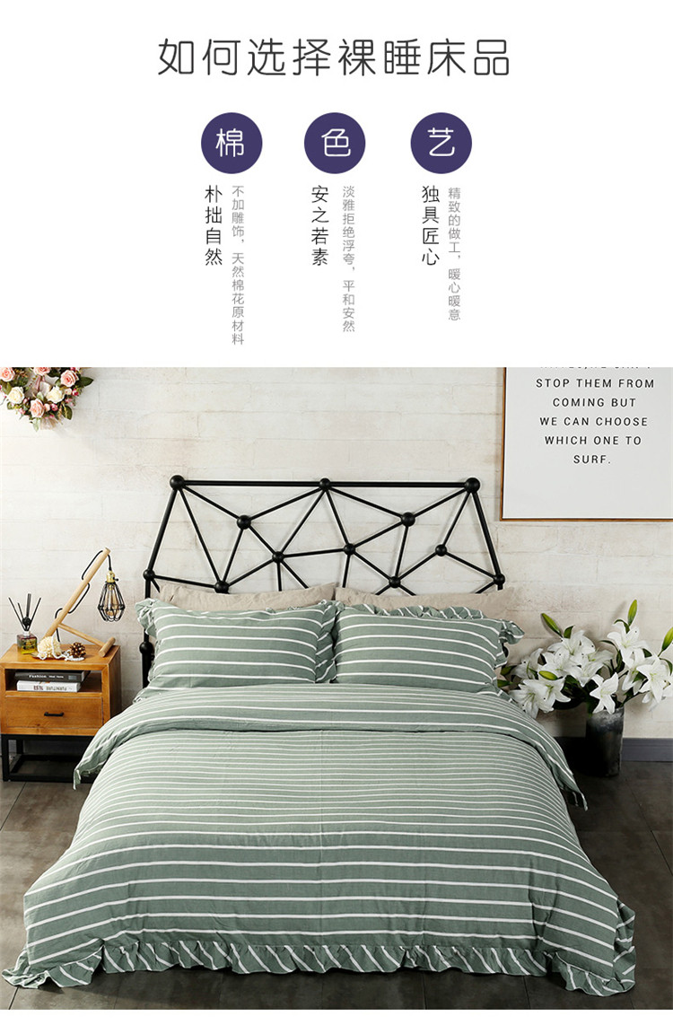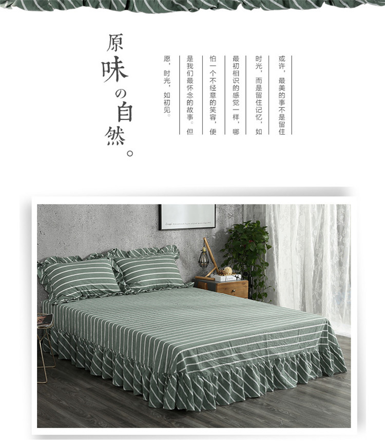 商品名称:福丽莱 全棉色织水洗棉四件套1.8m床(床裙款)莫妮卡-绿
