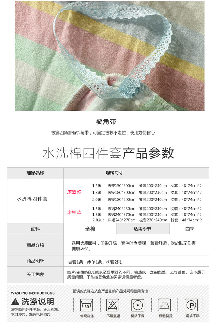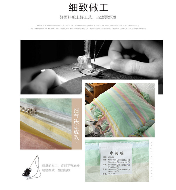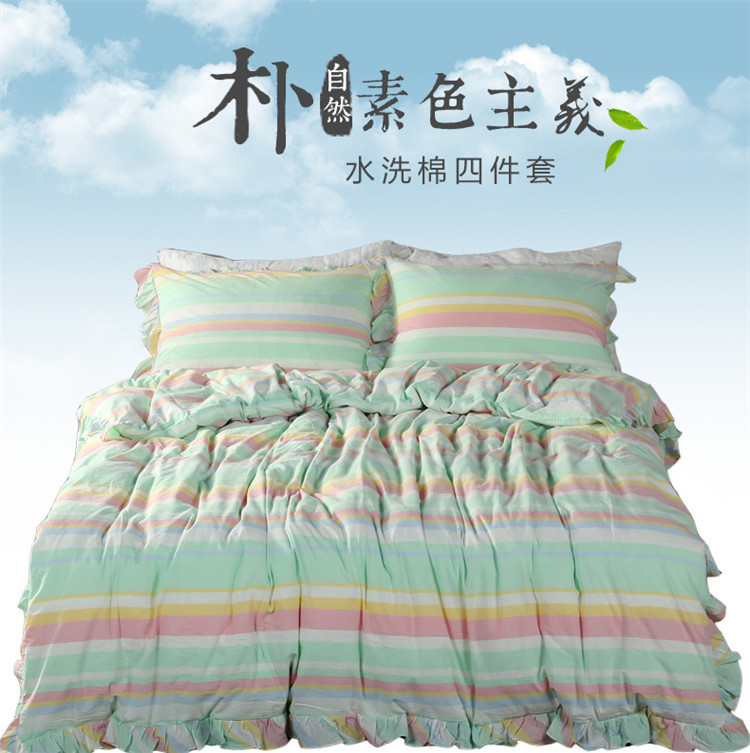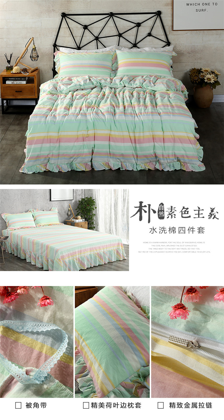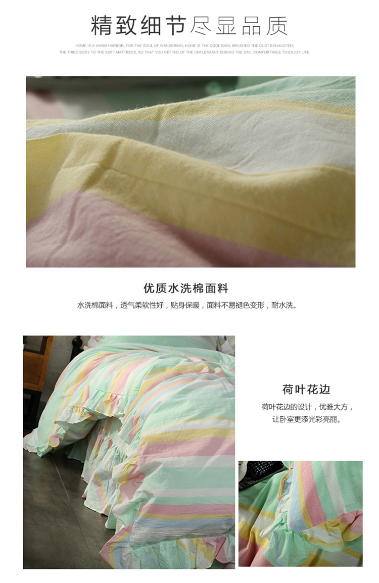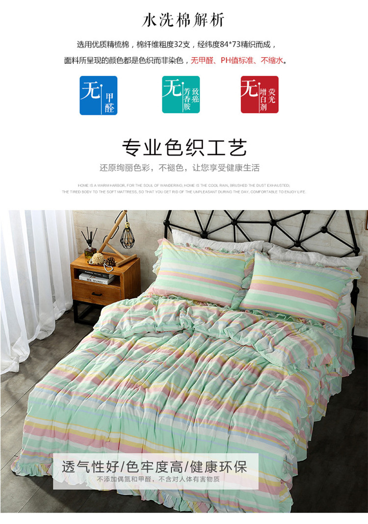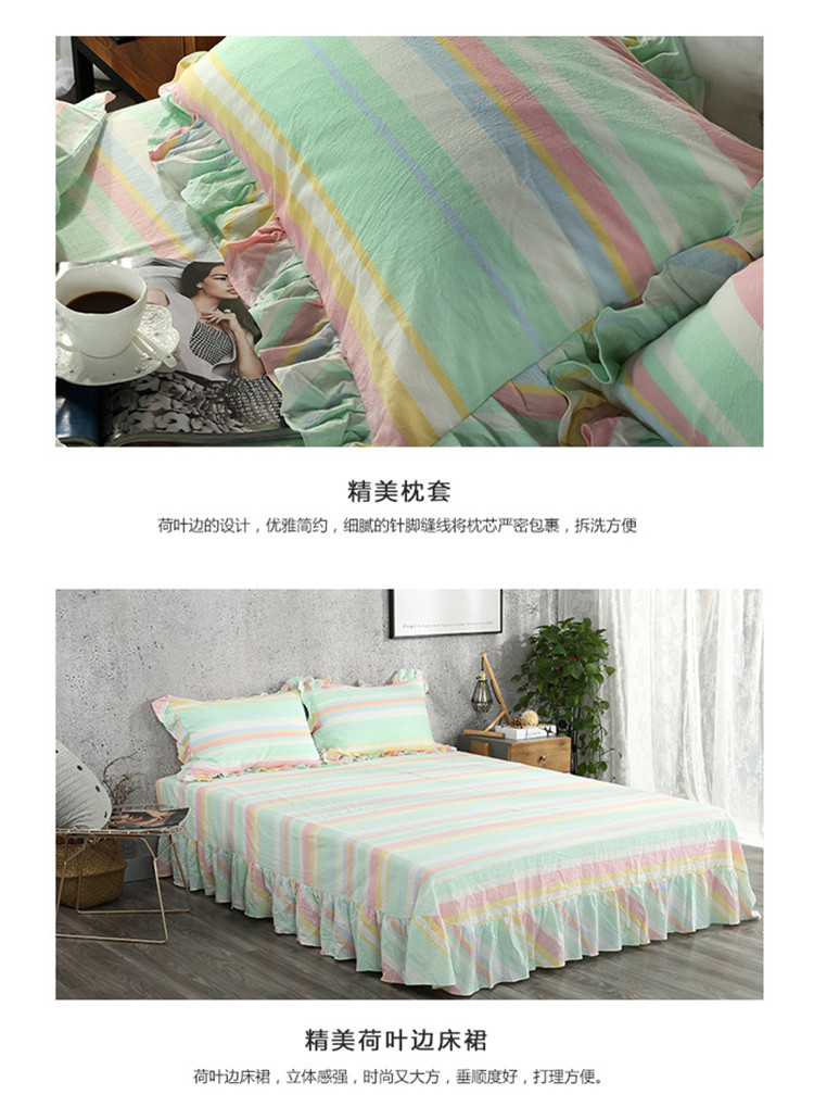 商品名称:福丽莱家纺 全棉色织水洗棉四件套1.8m床(床裙款) 时光