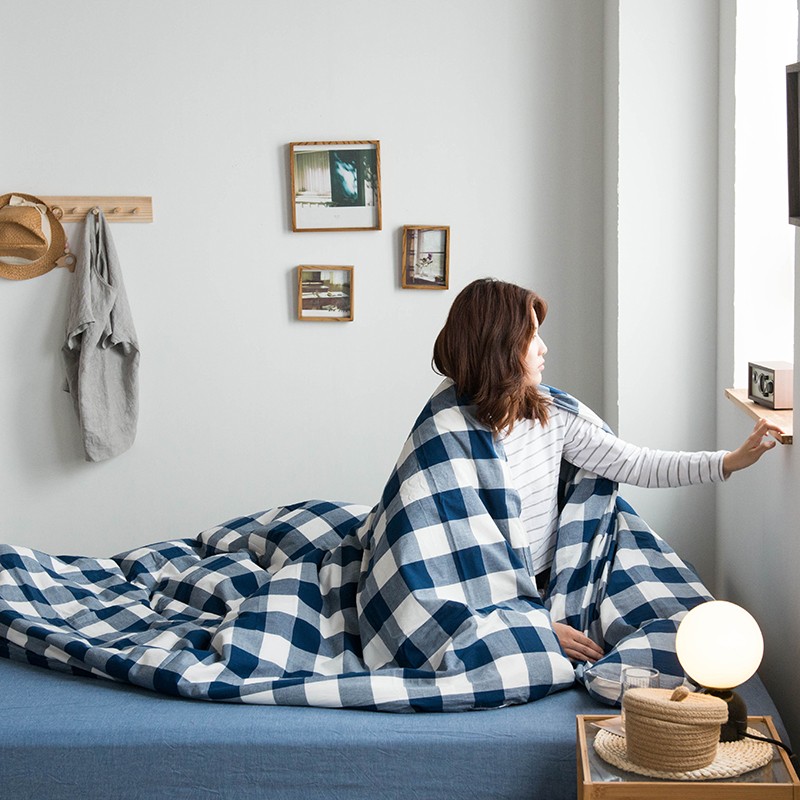 尚品本色 2022新款水洗棉套件系列-单被套 蓝中格