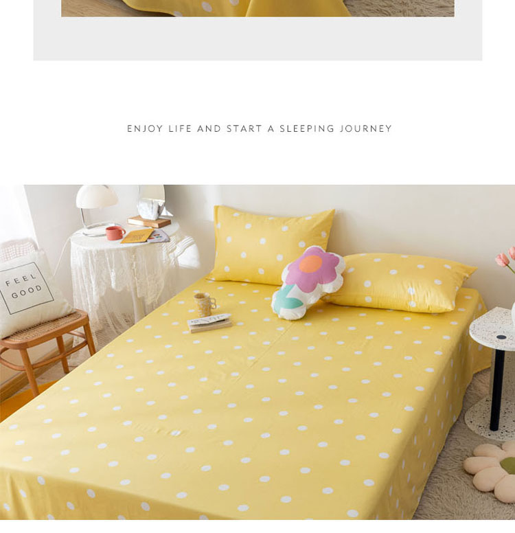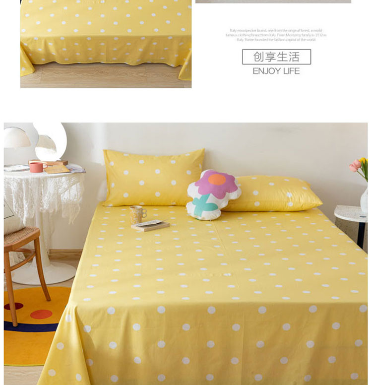• 91家纺网 家纺一手货源 找家纺 梦家居 2021新款40s纯棉13372卡通单床单 波点浅黄