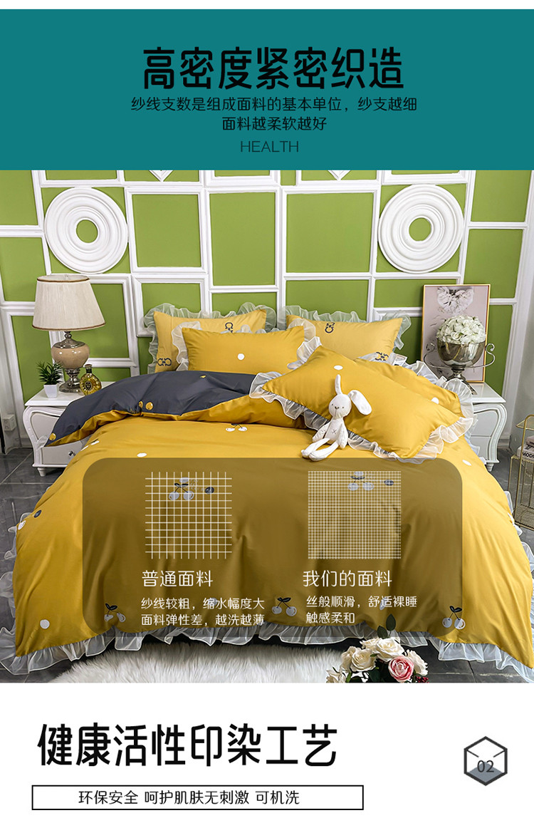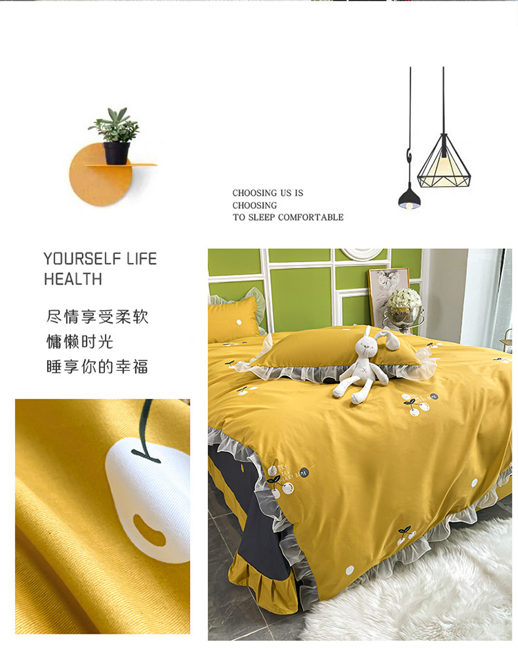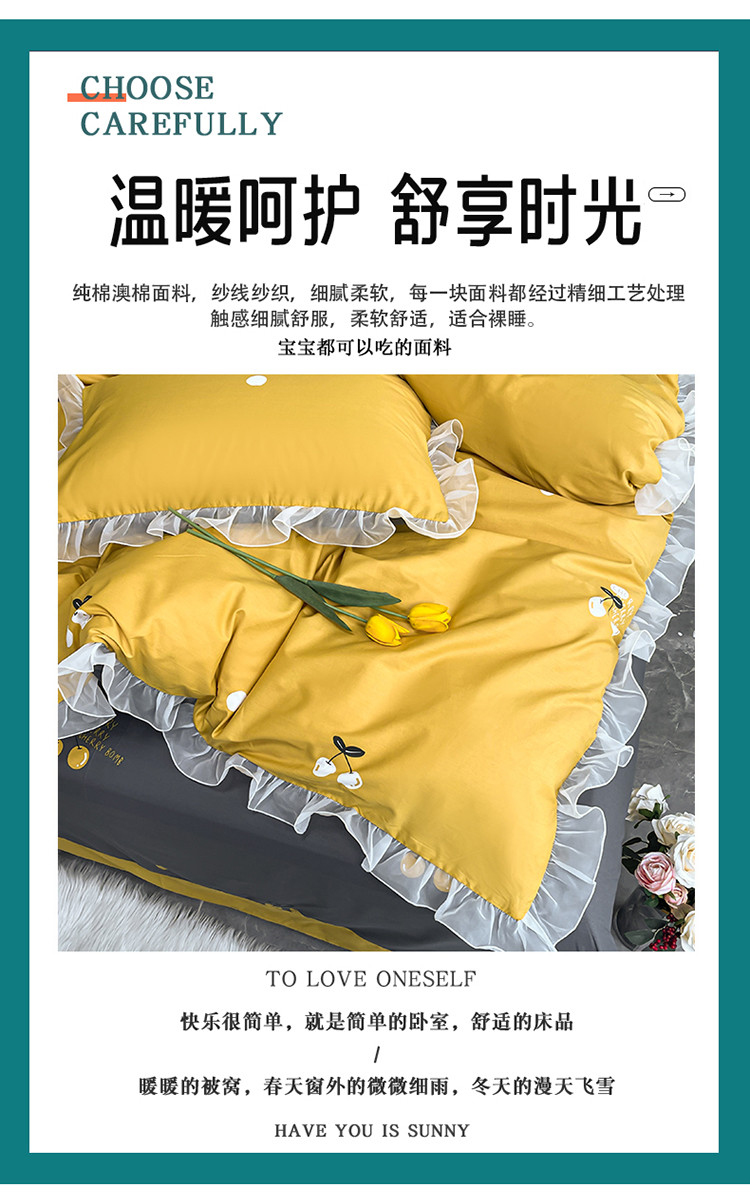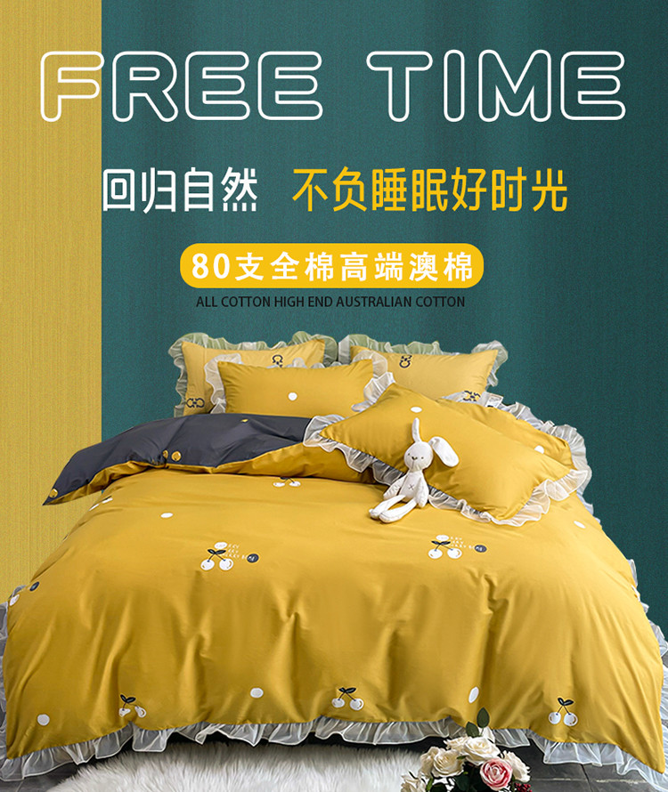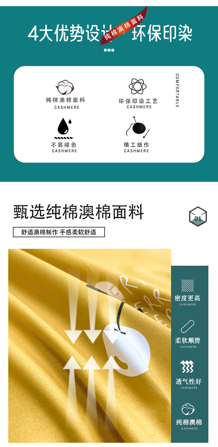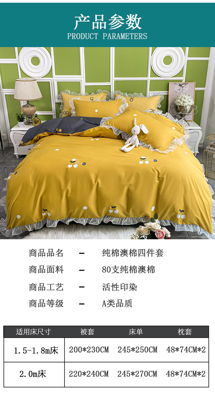 商品名称:品家居 2021新款80支全棉高端澳棉四件套 果味风情-黄