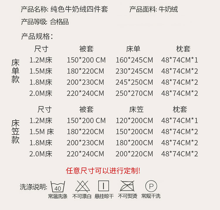 2.0m床笠款四件套 | ¥134.00 |