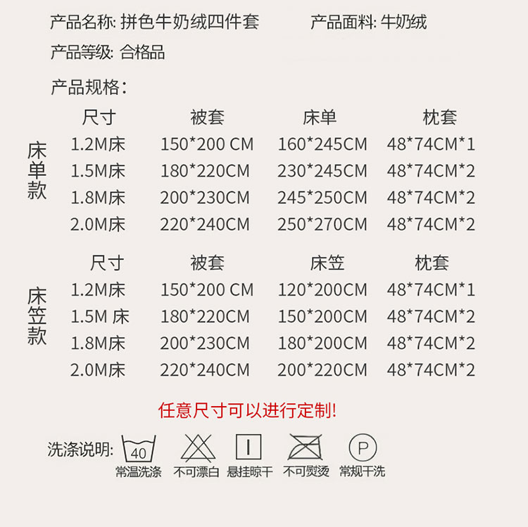 2.0m床笠款四件套 | ¥134.00 |