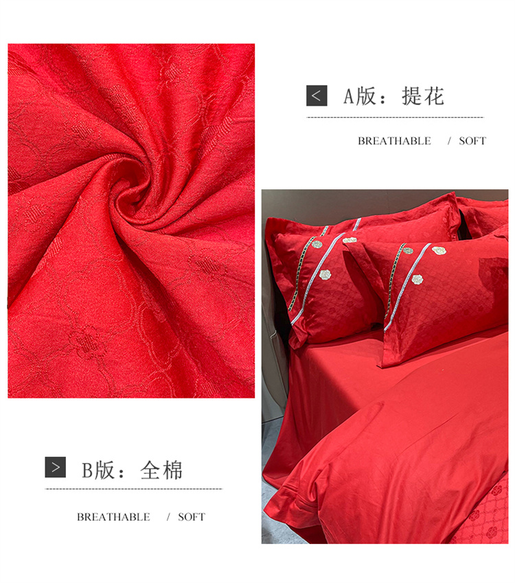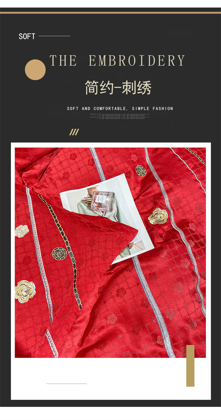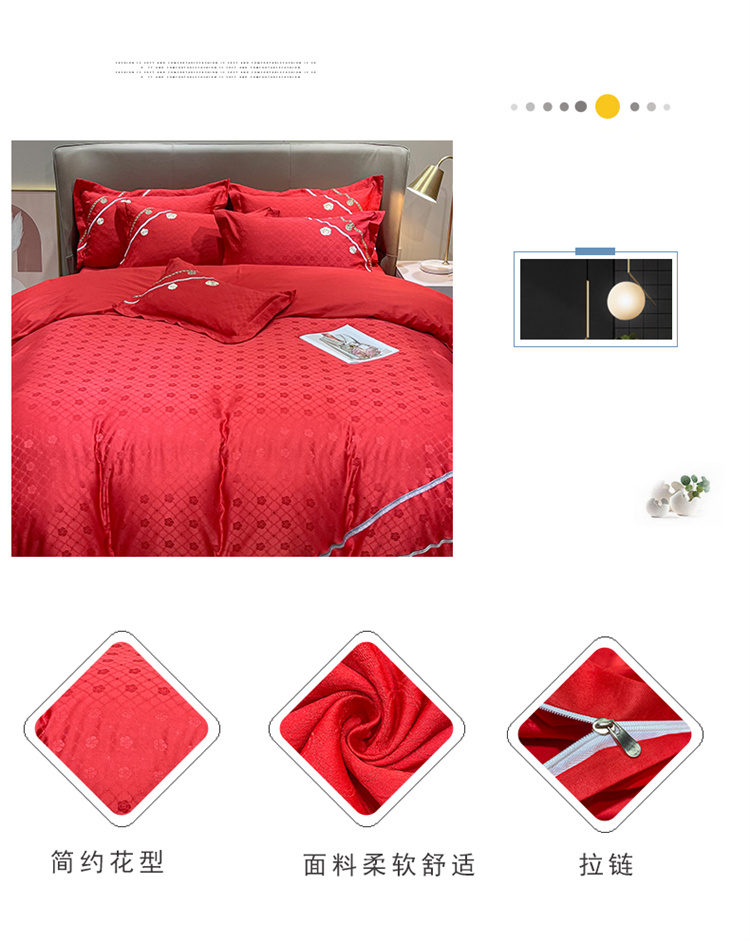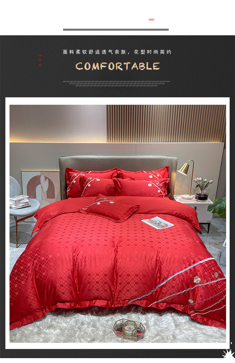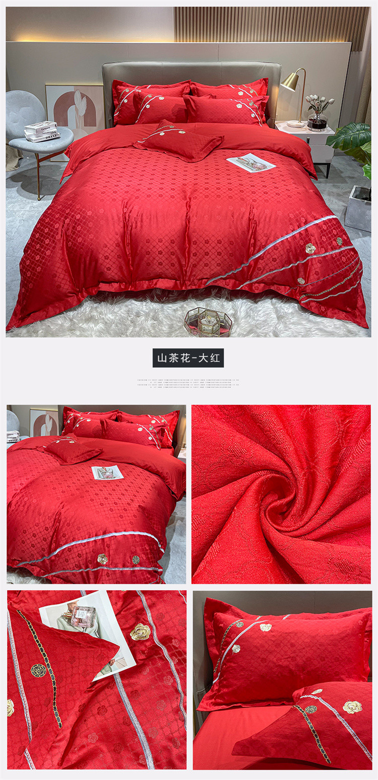 商品名称:安妮家居2021新款山茶全棉提花四件套 山茶花-大红