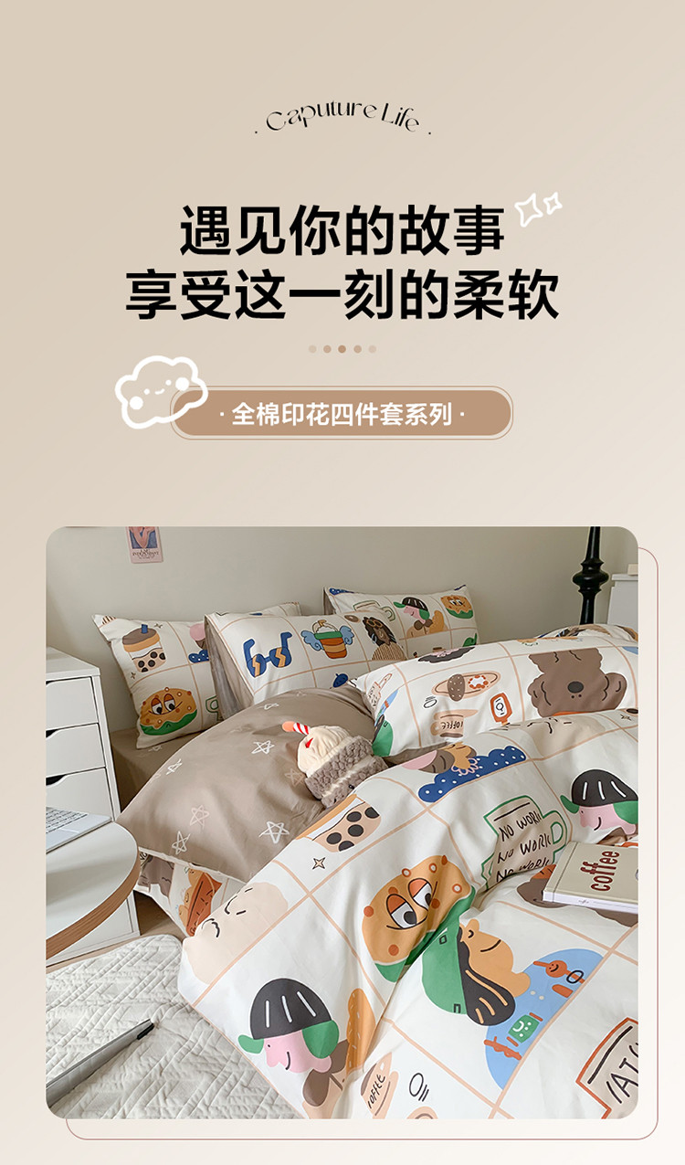 (总)澳萝拉 2023新款全棉印花四件套会员减5元,嗨迪诺,可爱多多,可可朵朵,兔兔莓莓,熊熊的面包,安绘里,豹纹棕熊,草莓花园,粉心小熊,简单生活,快乐星球,蓝心小熊,时尚熊,贪吃鲨,甜心花园,甜心小兔,童话镇,元气小熊,薄荷奶绿,黑糖乳酪,花语仙踪,秘密花园,暖时光,童趣园,野餐森林,元气花花,元气橘,云上花园,呆萌狗,古灵精怪,乖乖兔,好事发生,花朵兔兔,花园漫步,焦糖布丁,爵士汪,奇幻星球,糖果兔兔,甜甜圈,小确幸,小甜心,心动甜心,星际兔,游乐园,云朵兔兔,芝芝汪