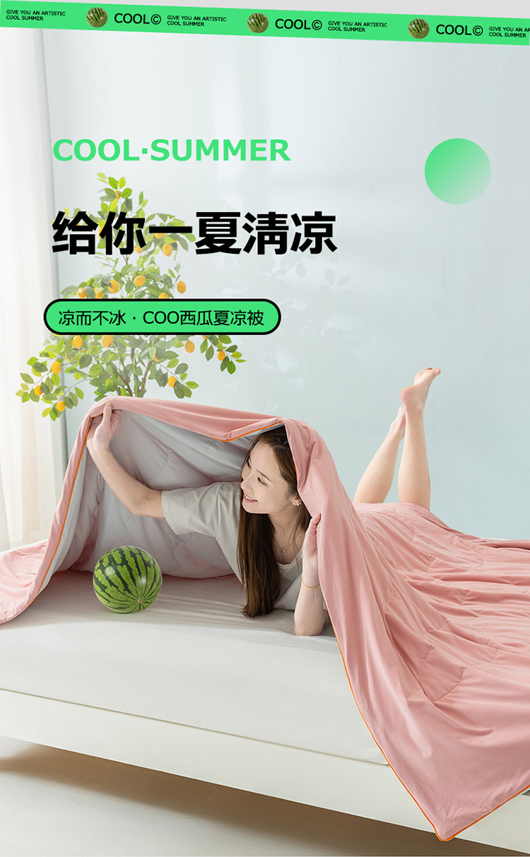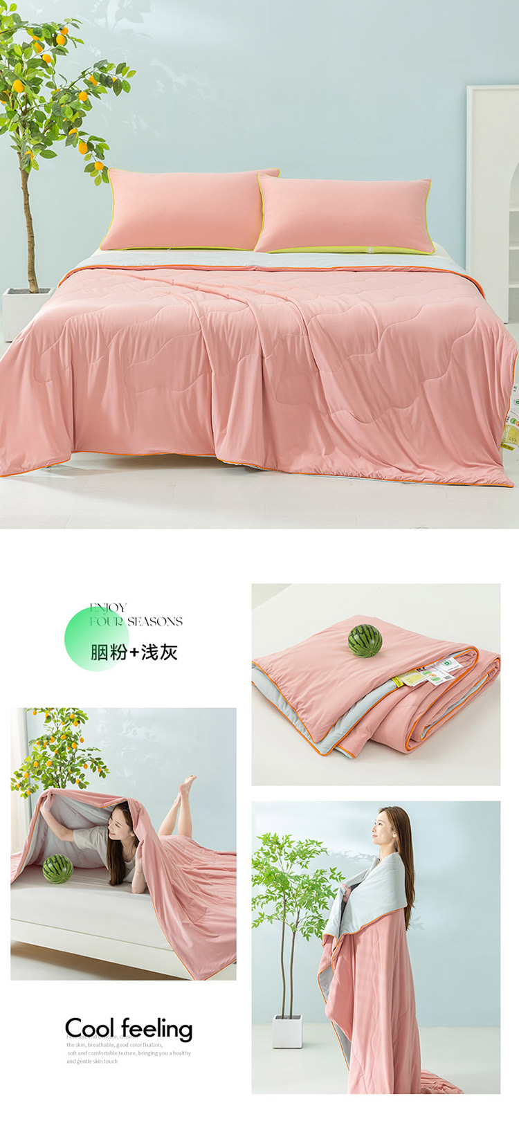 商品名称:钰博家纺 瓜瓜夏凉被 胭粉+浅灰