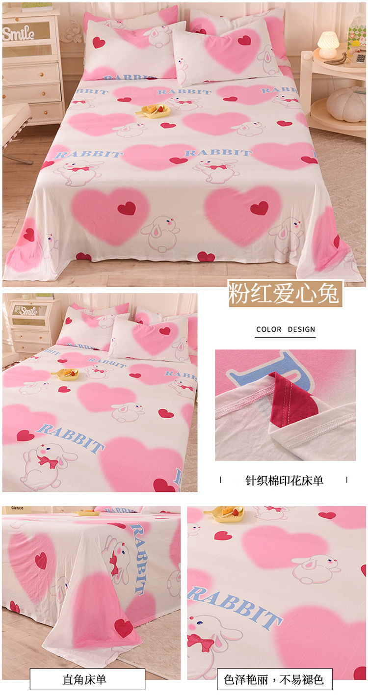 商品名称:甜之梦 2025新款针织棉印花单品床单 粉红爱心兔