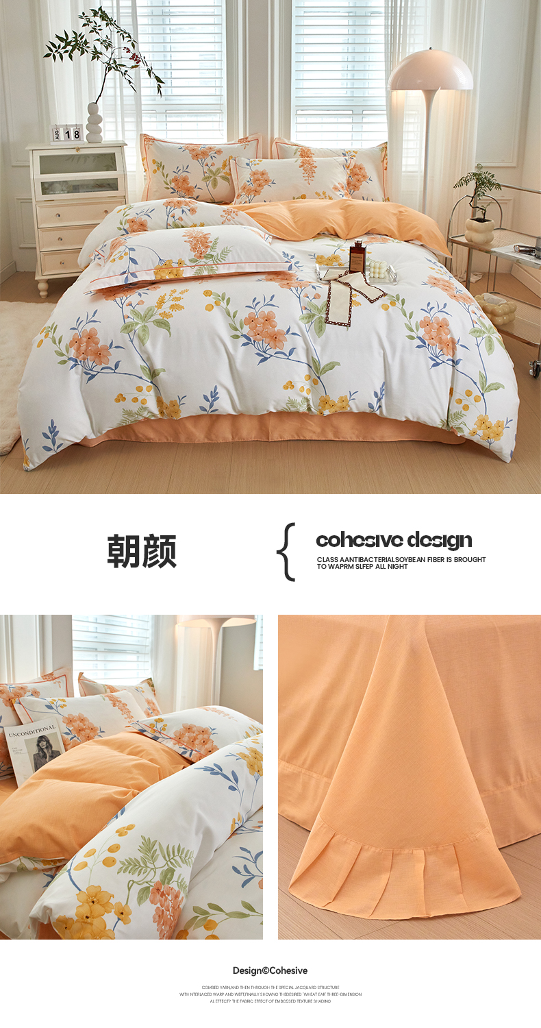 商品名称:沐白家居 2024新款全棉13376全棉印花四件套 朝颜