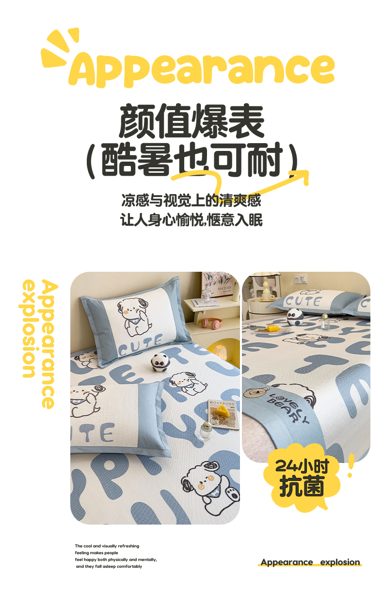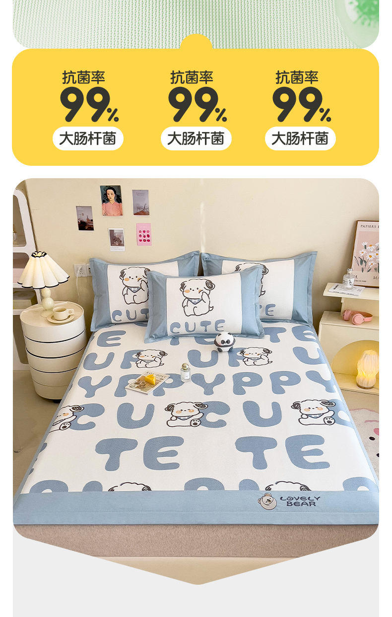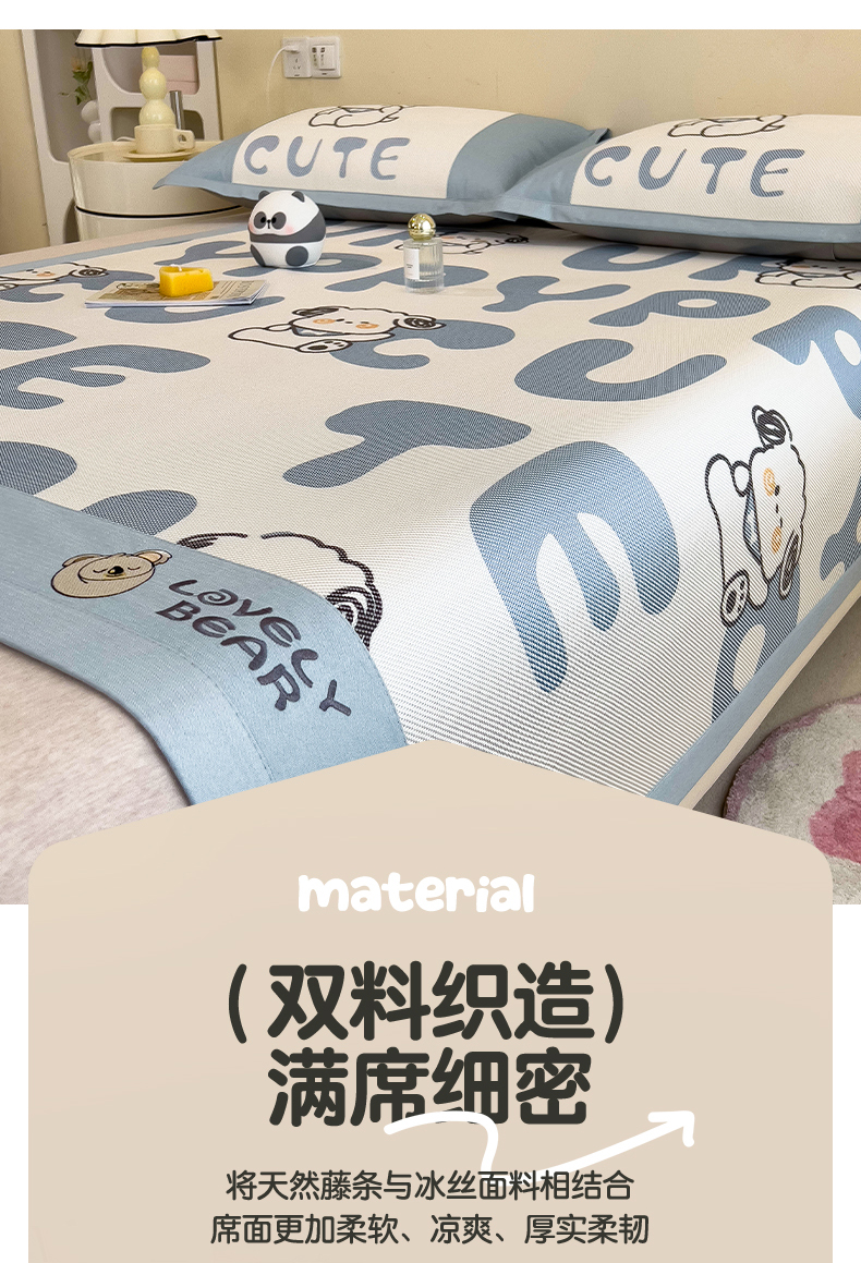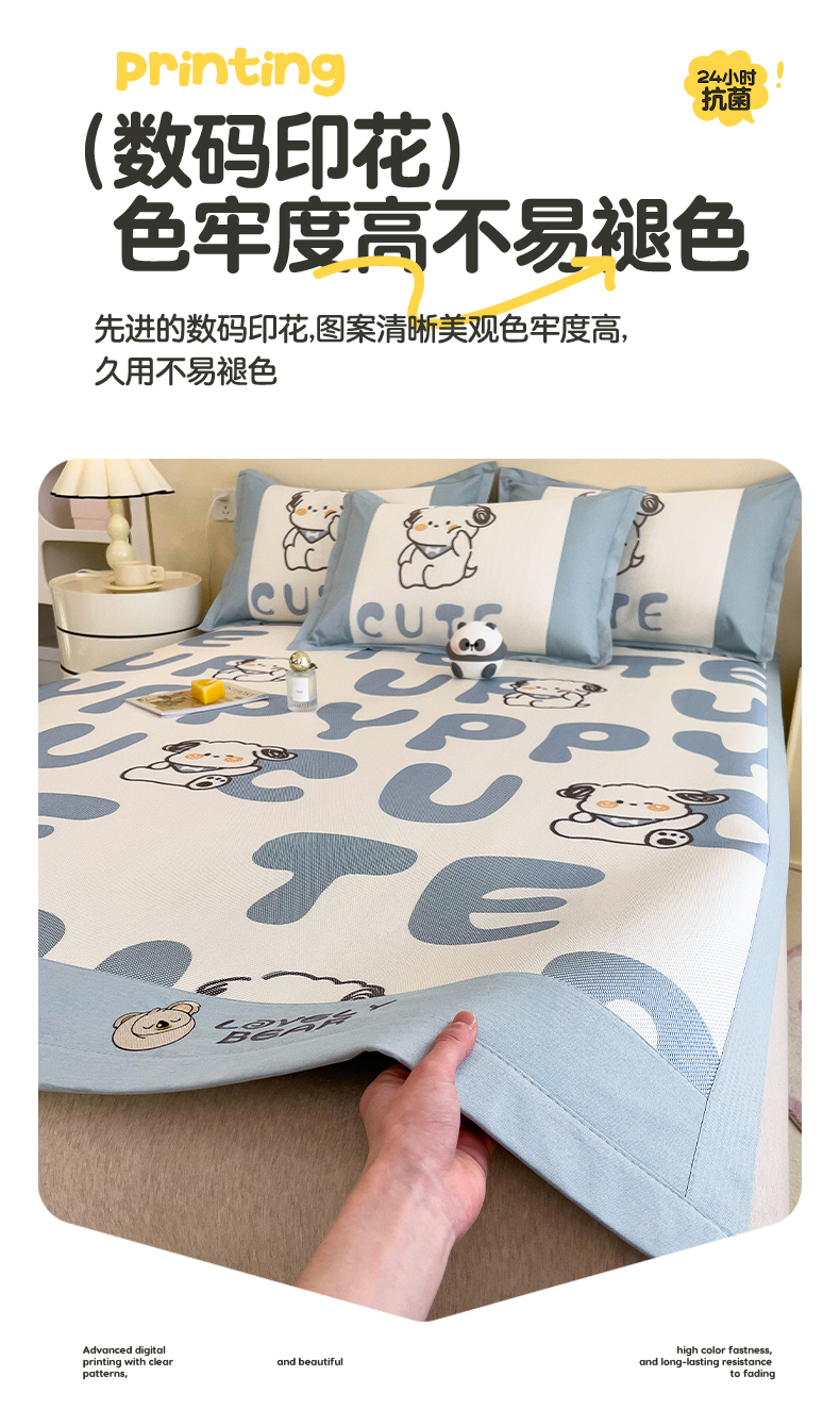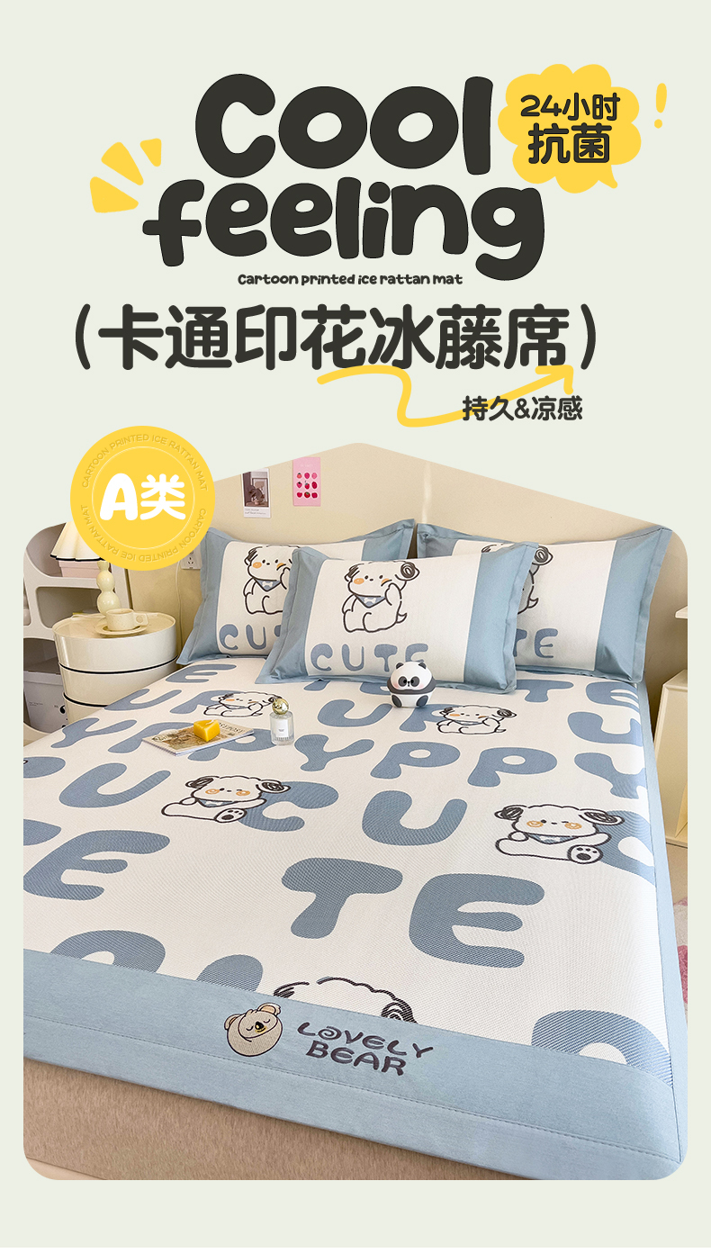 当前位置: 91家纺网 > 商品网购 > 床上用品 > 凉席 > 其他凉席 > 全季家居 2024新款A类抗菌数码印花冰藤席三件套 床席款-字母小狗