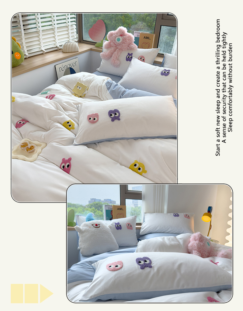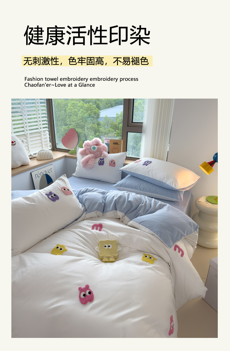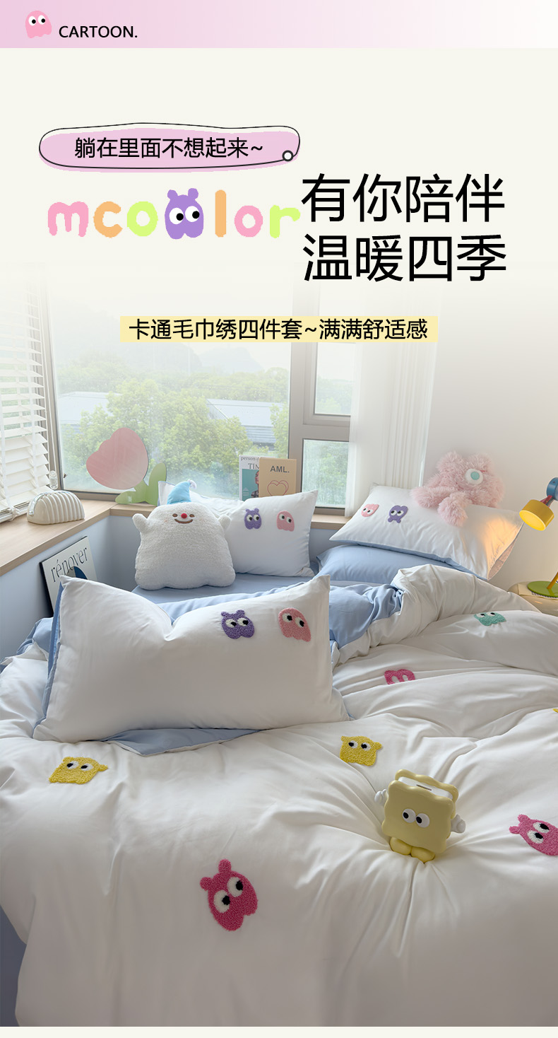 当前位置: 91家纺网 > 商品网购 > 床品套件 > 四件套 > 毛巾绣四件套 > 曼谷 年新款多巴胺毛巾绣四件套柔软磨毛床上用品水洗棉套件 多巴胺-奶白浅蓝