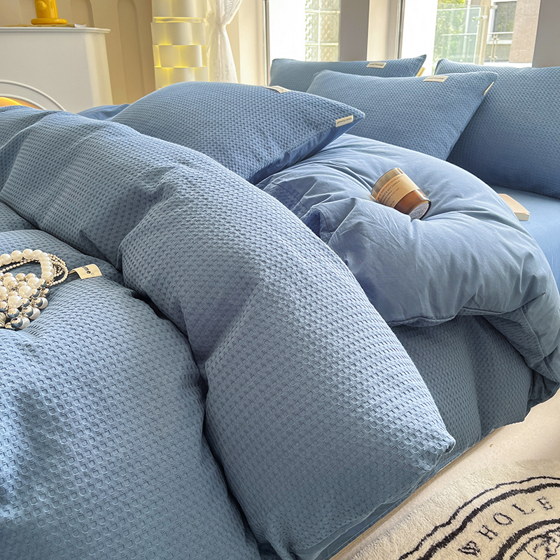 商品名称:2024沐辰家居-华夫格系列套件 牛仔蓝