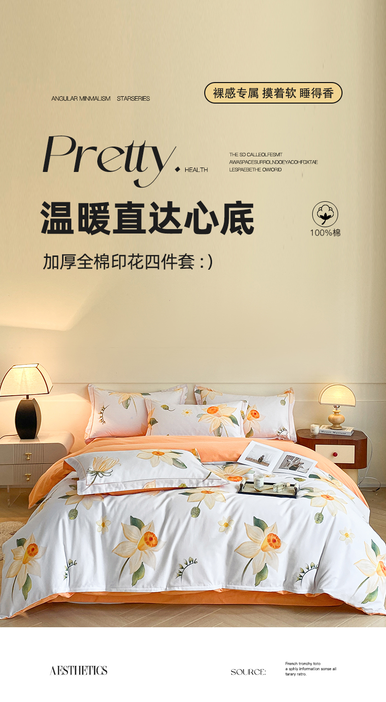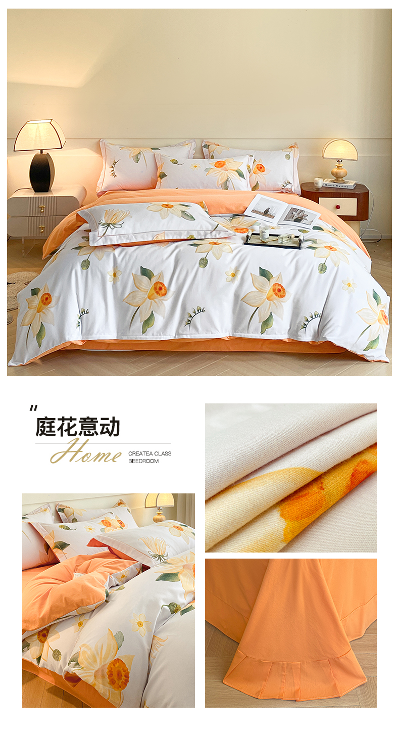 商品名称:格里芬家纺 2025新款花卉系列全棉加厚磨毛数码印花四件套(控价劵后标准208起) 庭花意动