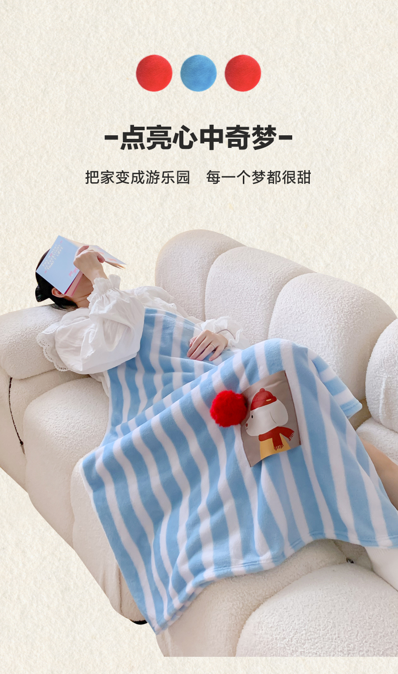 (总)澳萝拉 2024新款卡通小清新双面牛奶绒法莱绒毛毯四季盖毯