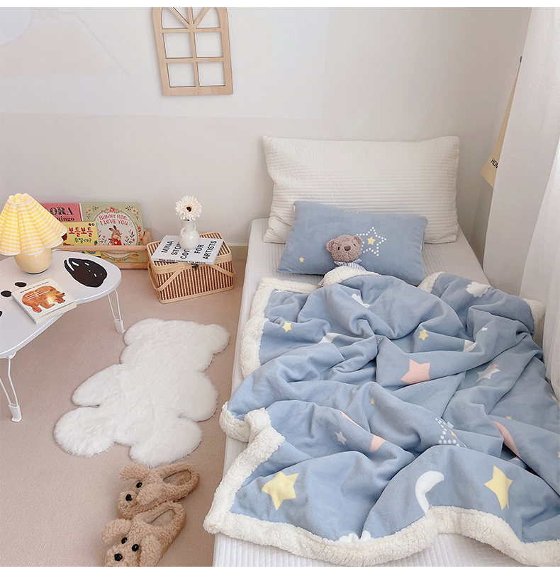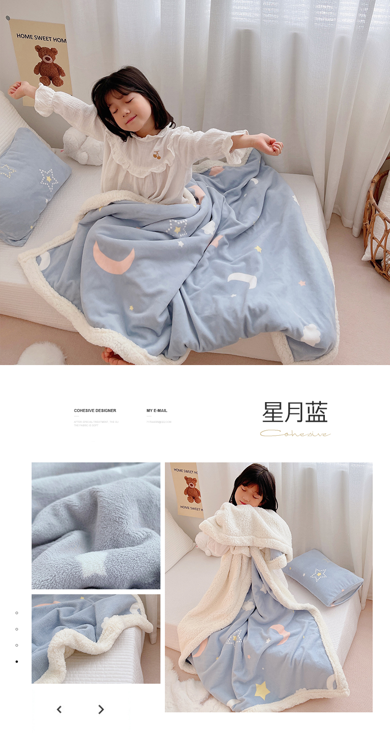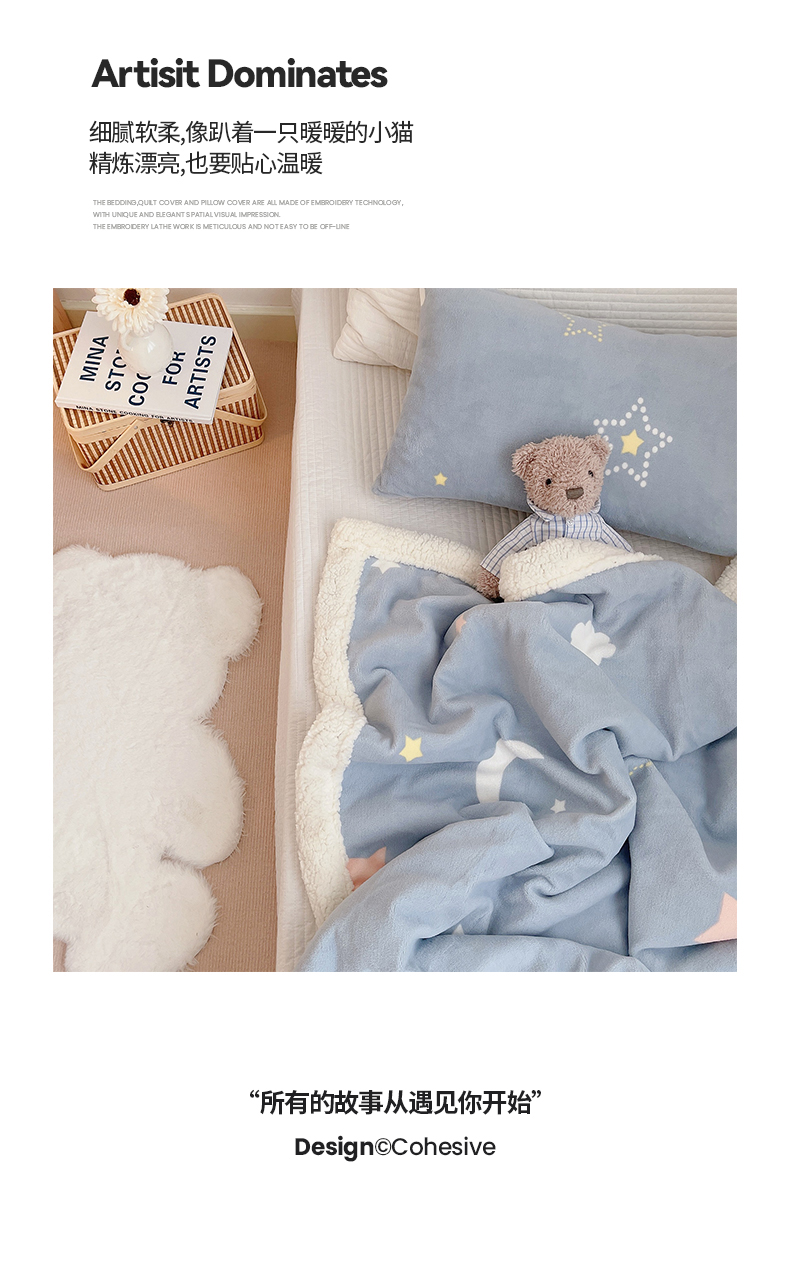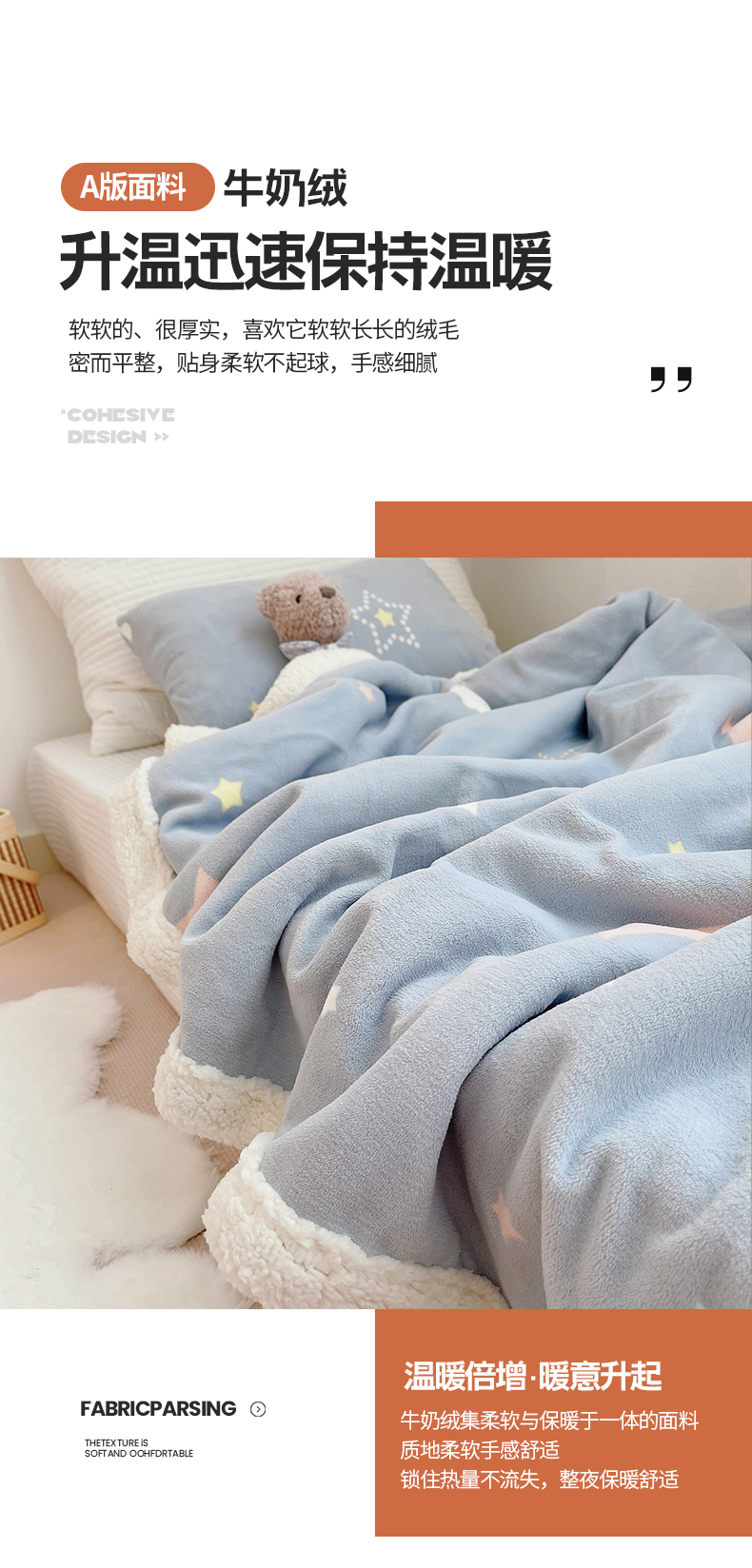 商品名称:大元 2025新款牛奶绒羊羔绒毛毯 星月蓝