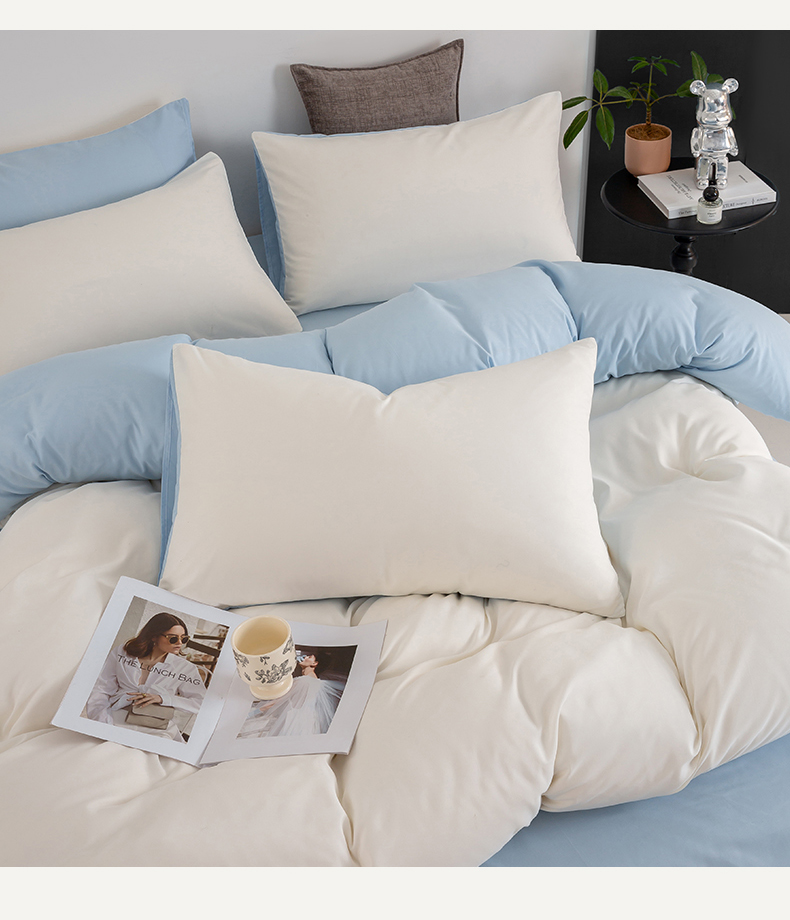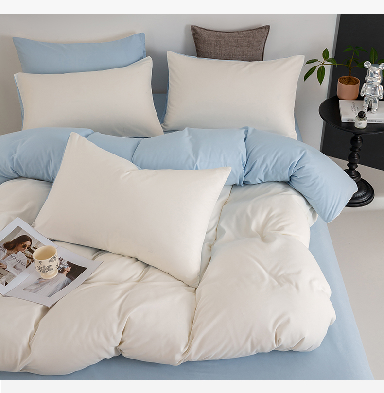 当前位置: 91家纺网 > 商品网购 > 床品套件 > 四件套 > 普通磨毛四件套 > 乐沐家纺 2024新款纯色磨毛水洗棉四件套 奶白蓝