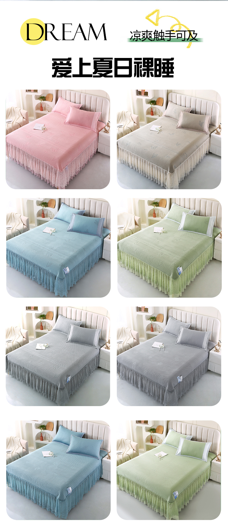 (总)莱轩席业 2024新款A类抗菌刺绣冰丝席可拆卸床裙款凉席,冰川粉,冰川咖,冰川蓝,冰川绿
