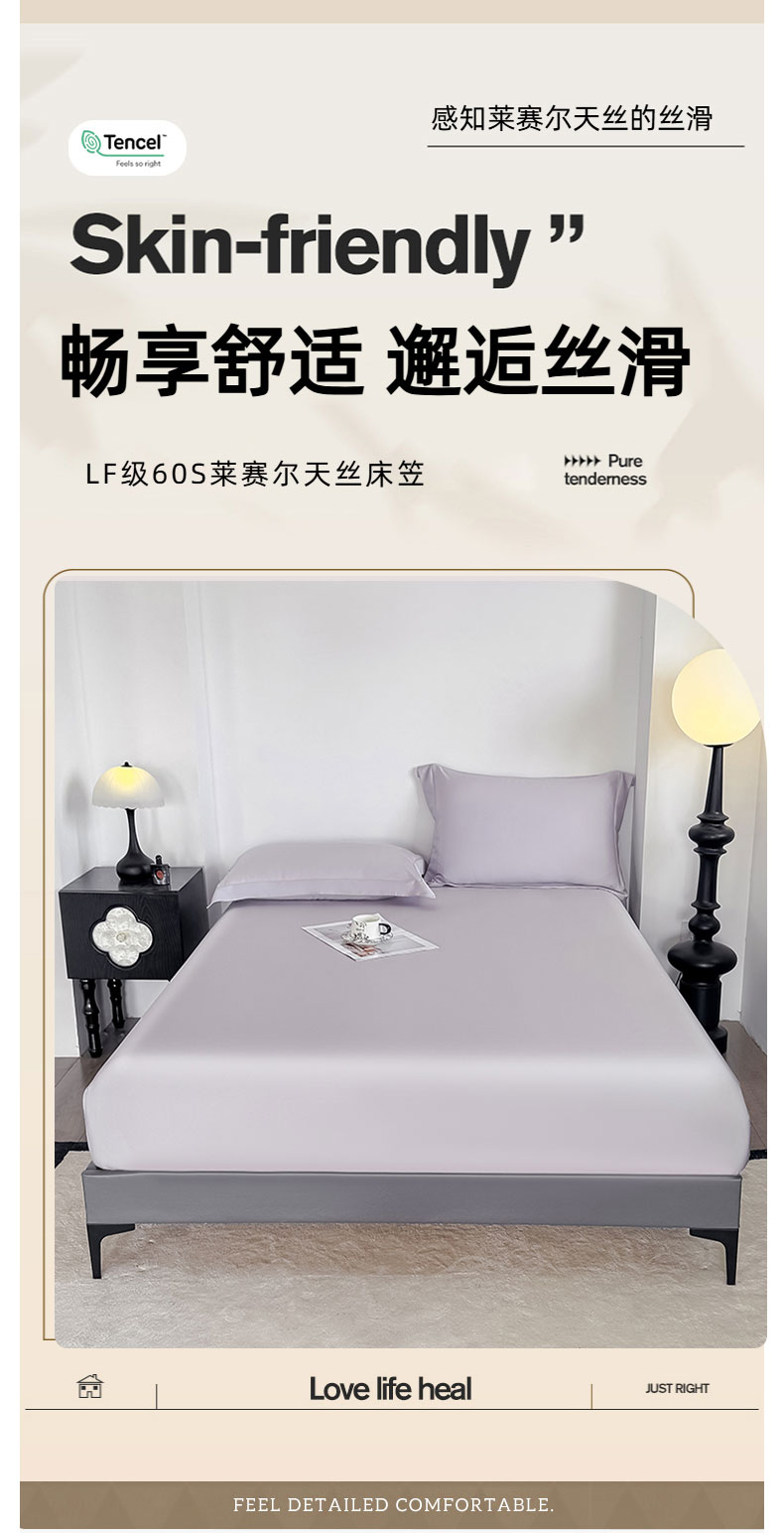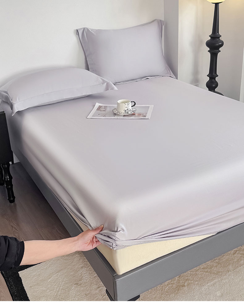 当前位置: 91家纺网 > 商品网购 > 床品套件 > 三件套 > 金喜 2025新款LF级60支莱赛尔天丝床笠三件套纯色天丝床笠 灰紫