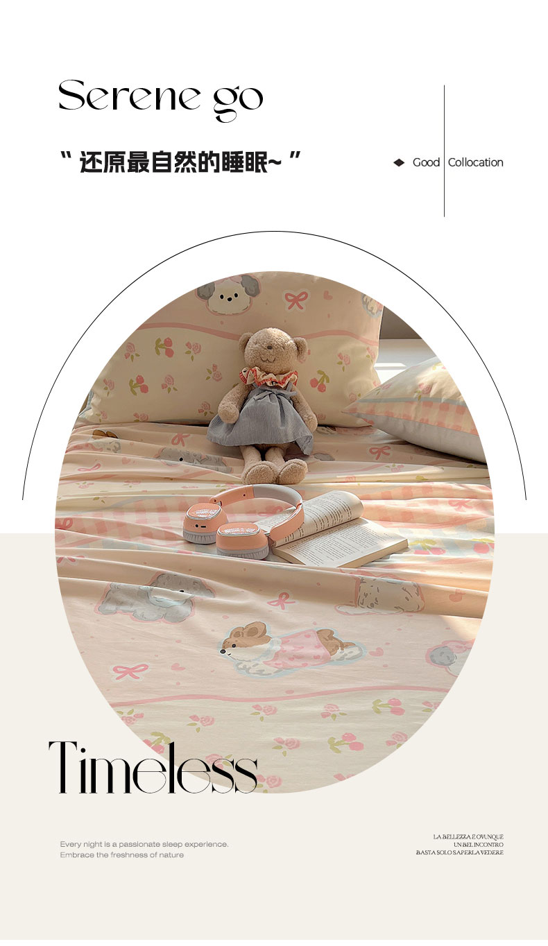 (总)六巷胡同 2025新款 INS减龄可爱风卡通全棉四件套第五系(森林音乐会系列),波点嘟嘟猫,点点面包犬,调皮蔷薇狗,哈喽泡芙猫,蓝格插画犬,森林音乐会