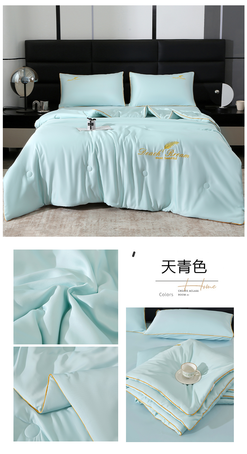 • 91家纺网 家纺一手货源 找家纺 缦绣阁家纺 2025春夏新款水洗真丝刺绣夏被凉感丝夏被冰淇淋夏凉被空调被 天青色