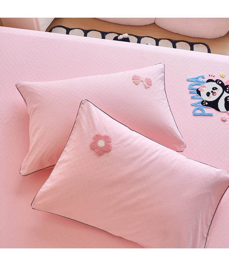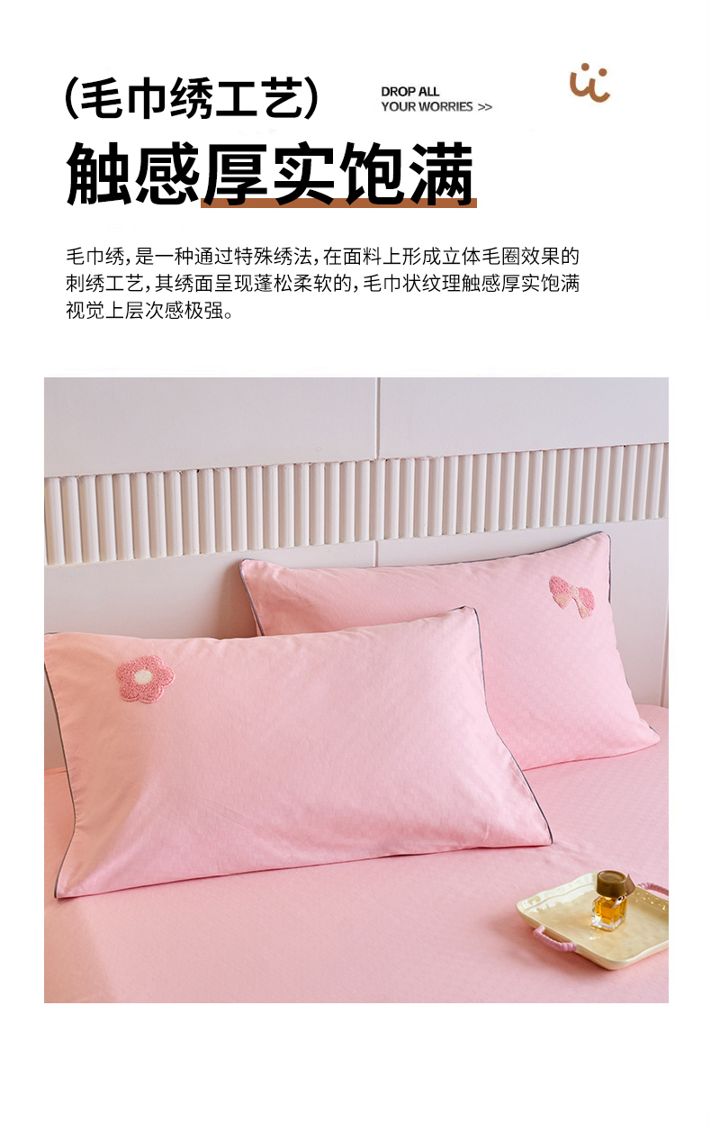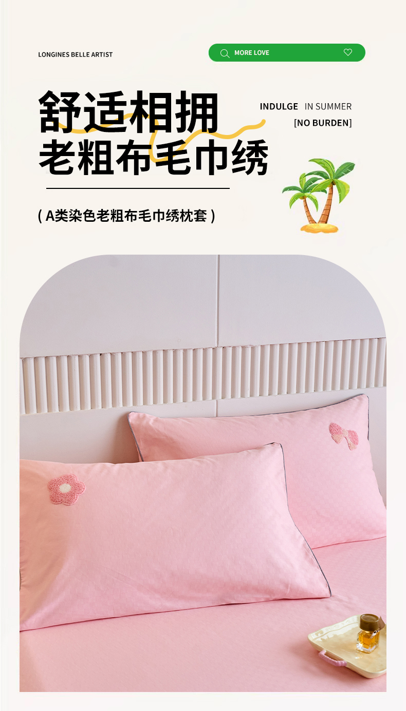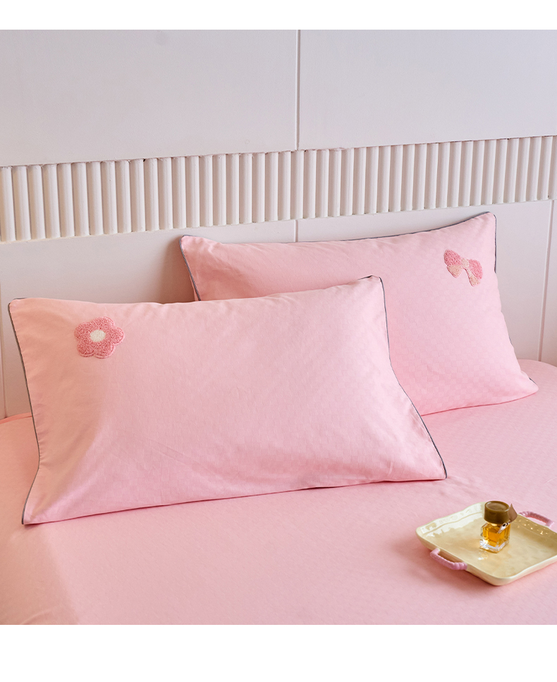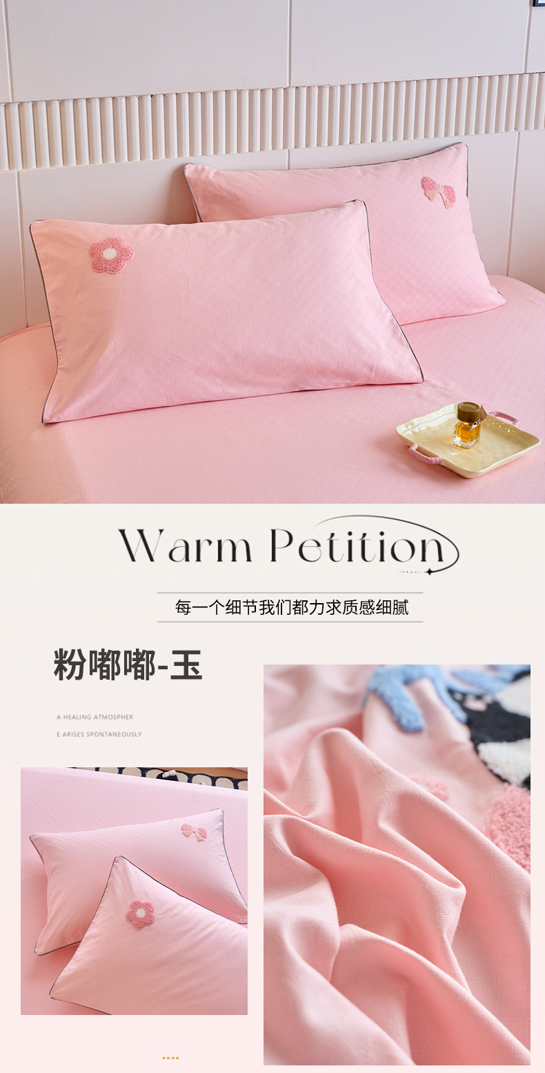 商品名称:春皖家纺 2025新款全棉纯棉提花粗布毛巾绣单枕套 枕套单件-风格二 粉嘟嘟-玉