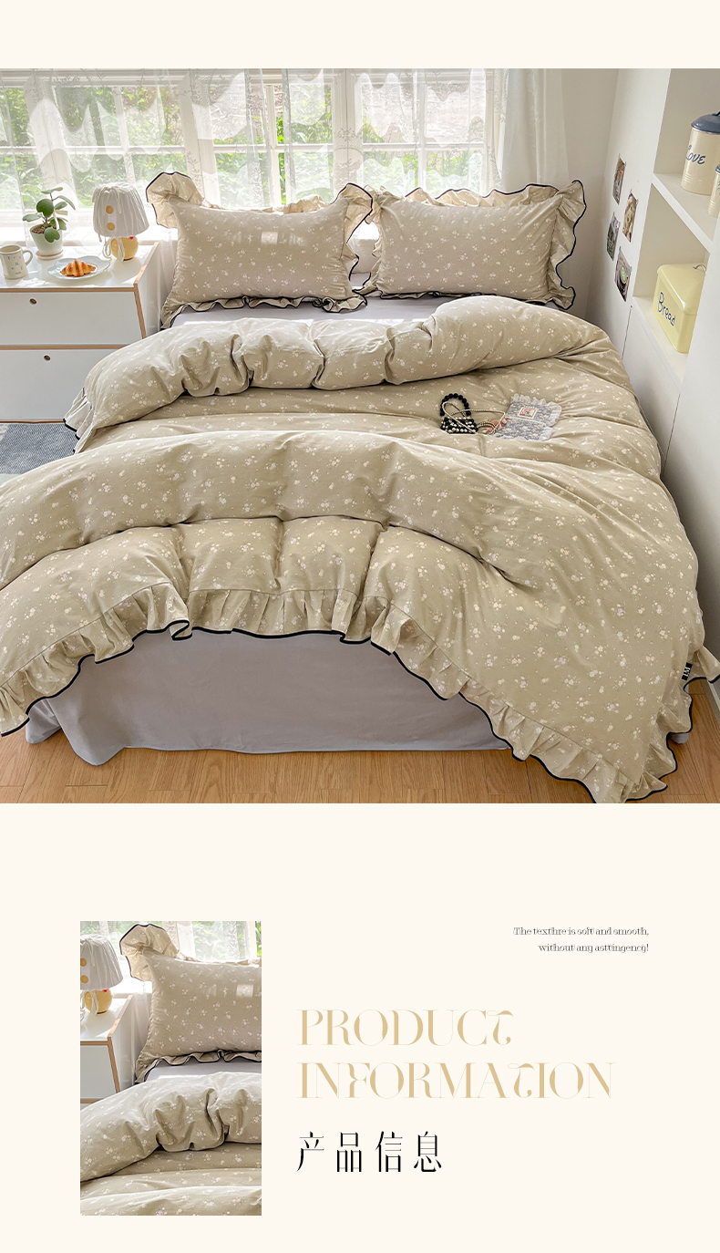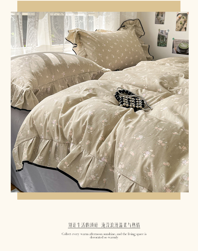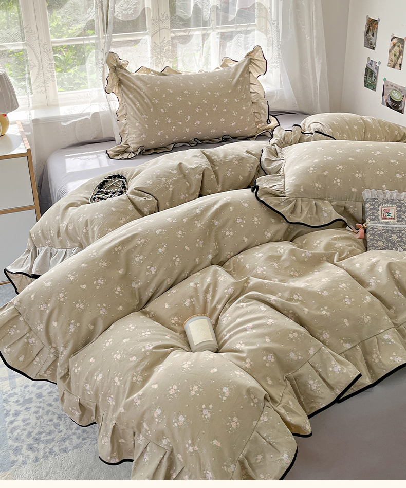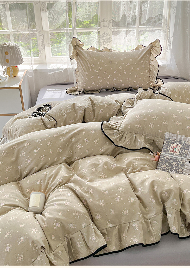 当前位置: 91家纺网 > 商品网购 > 床品套件 > 四件套 > 全棉普通四件套 > 乐美家纺 2025新款韩版全棉纯棉印花花边四件套 素心影(咖)