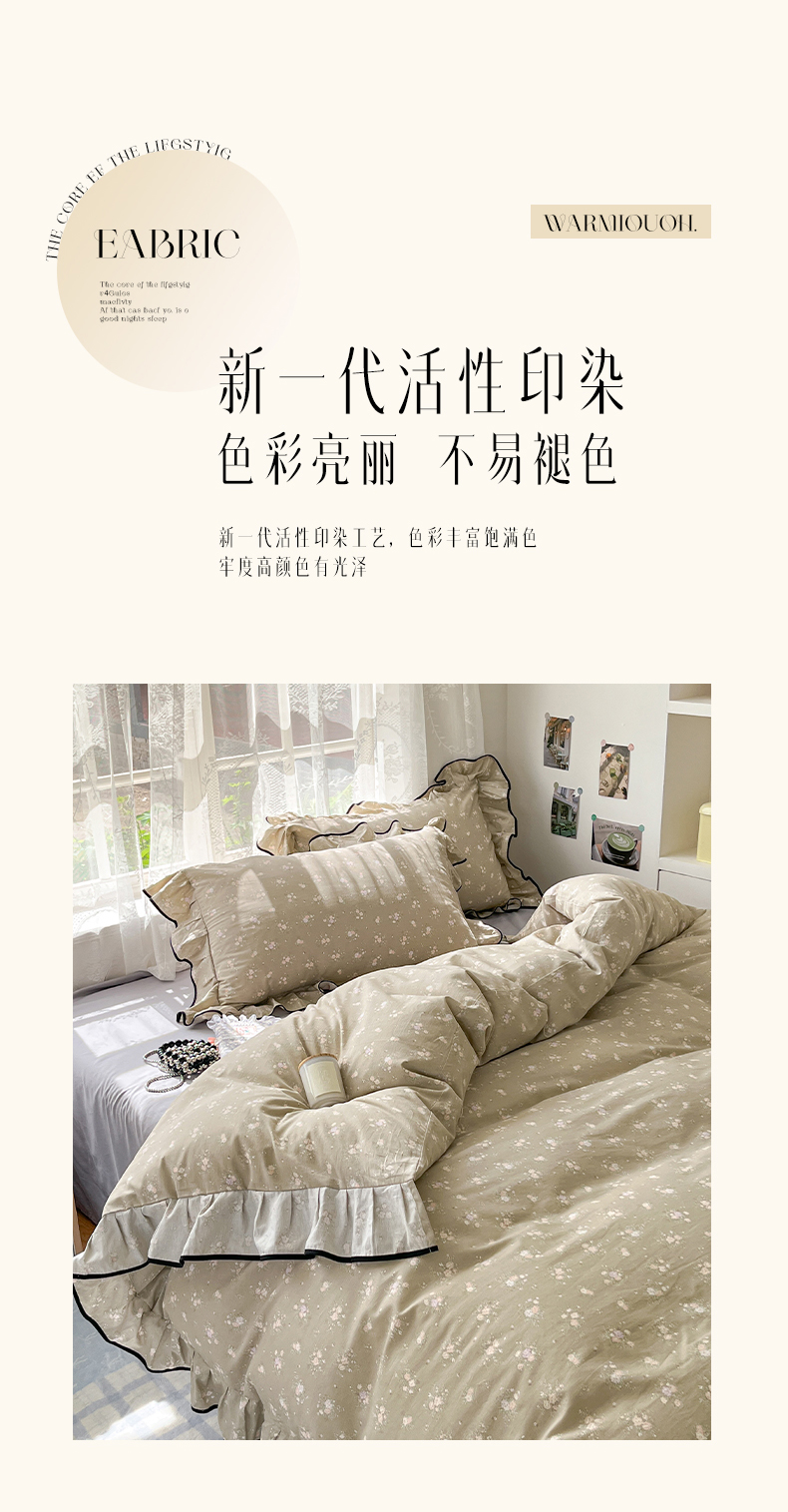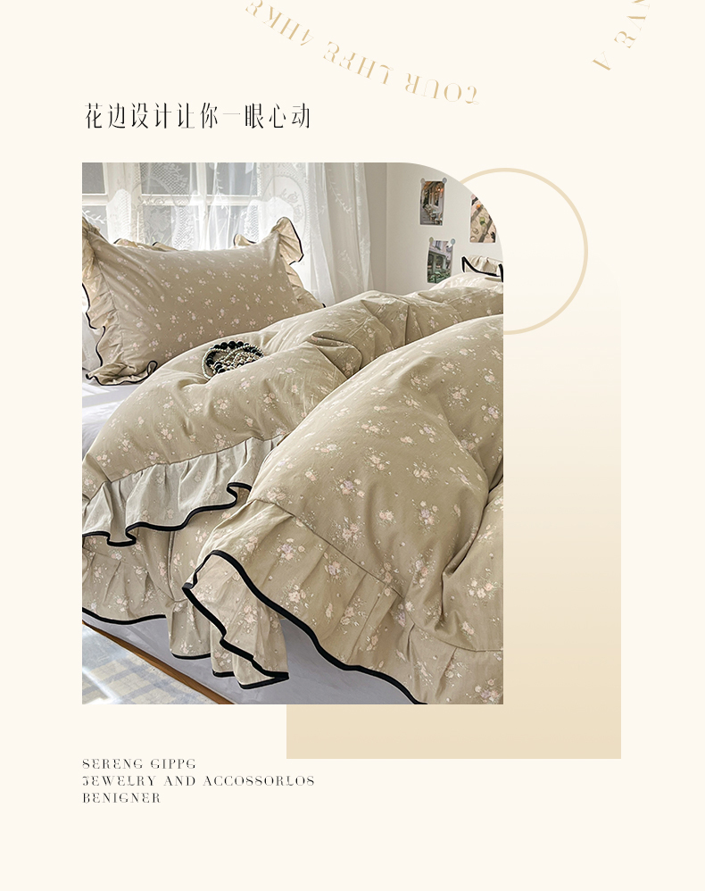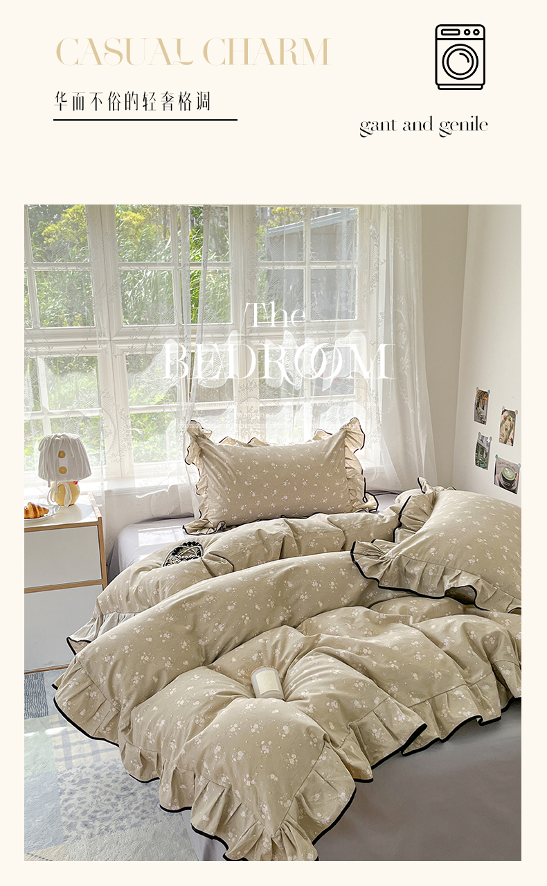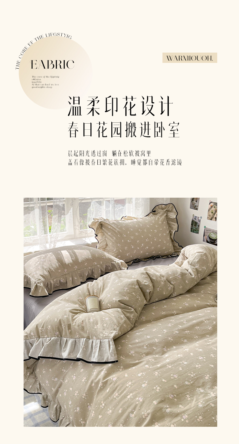 当前位置: 91家纺网 > 商品网购 > 床品套件 > 四件套 > 全棉普通四件套 > 乐美家纺 2025新款韩版全棉纯棉印花花边四件套 素心影(咖)