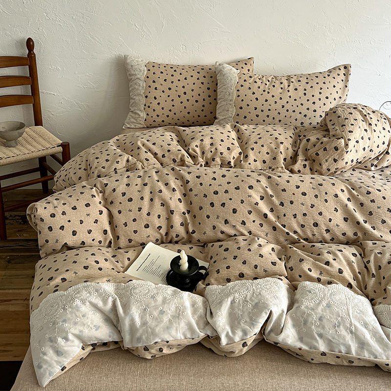 仟网汇 2025新款亚麻复古花边系列四件套 复古豹