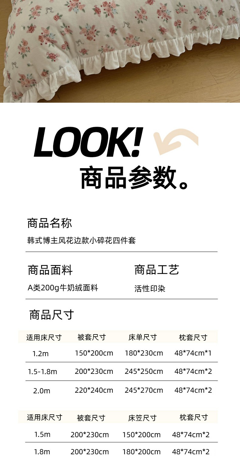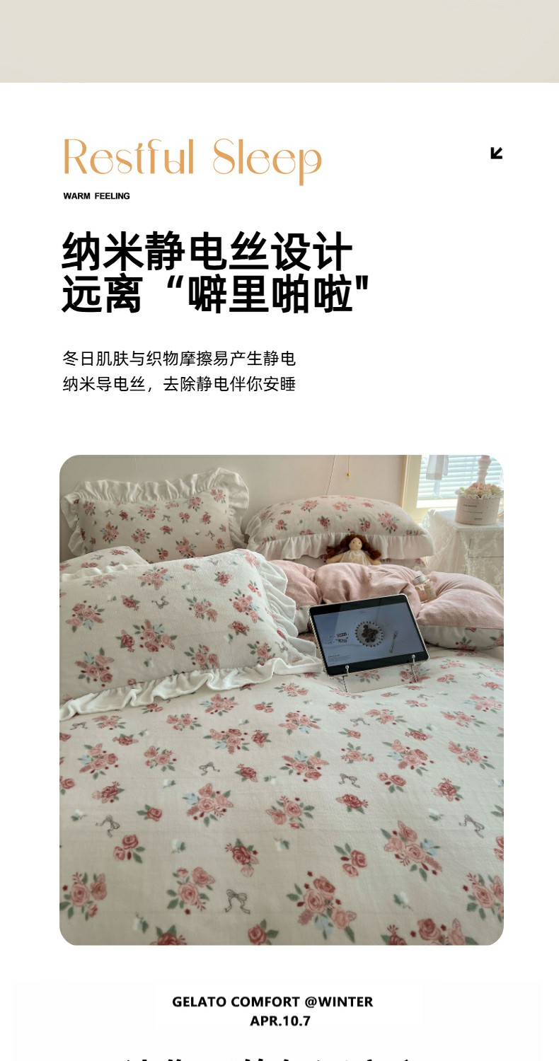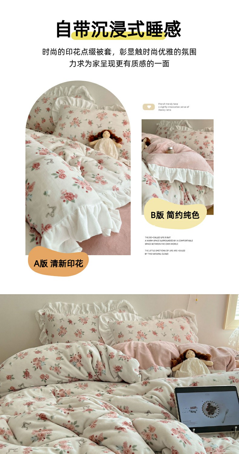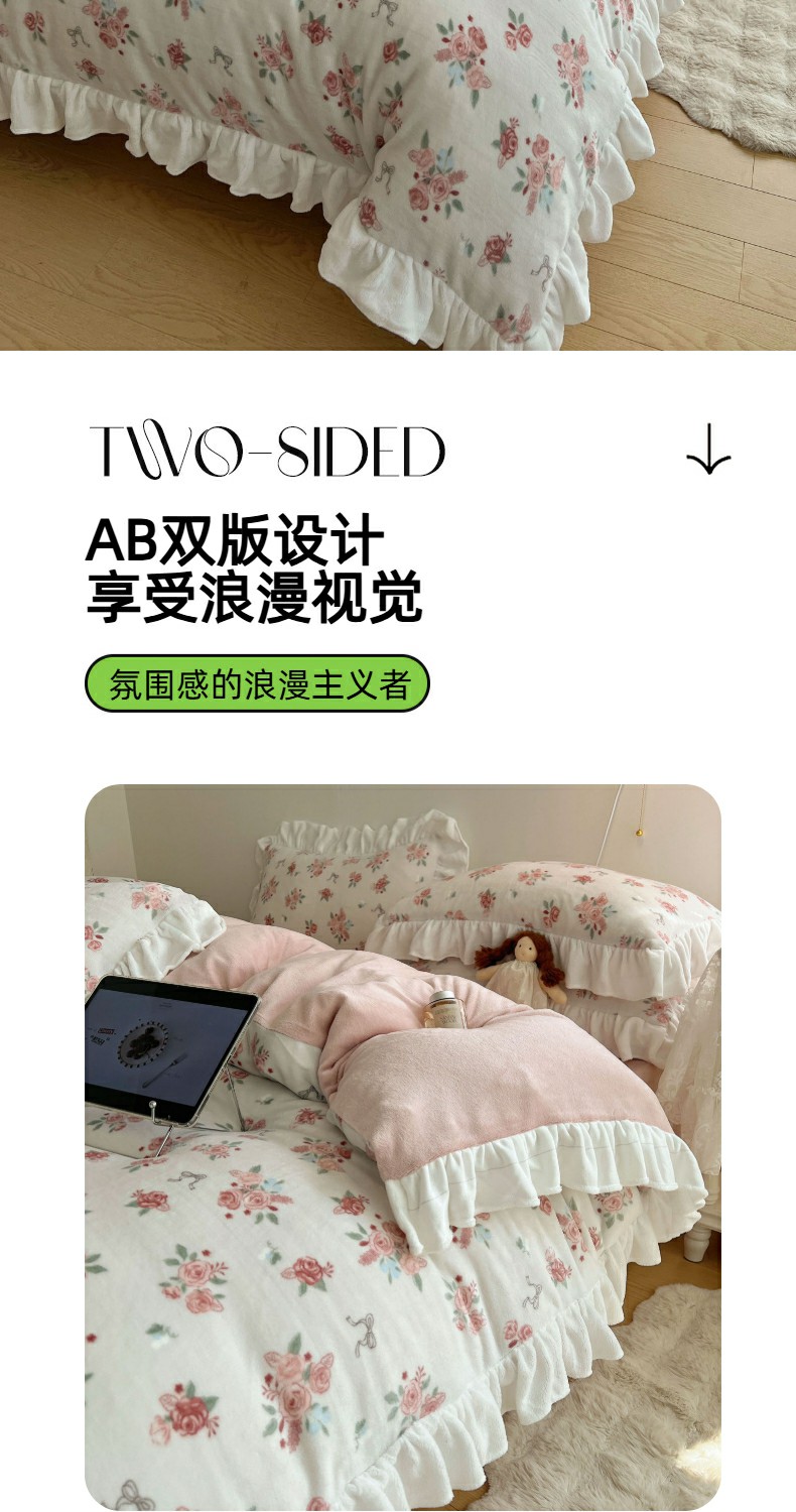 当前位置: 91家纺网 > 商品网购 > 床品套件 > 四件套 > 牛奶绒四件套 > 六巷胡同 2025新款韩式博主风花边款小碎花A类牛奶绒四件套 花边云屿桃记