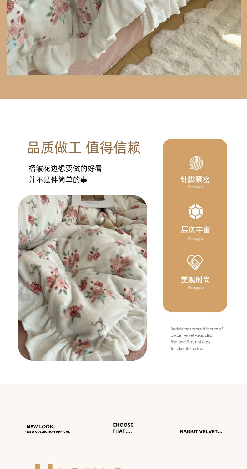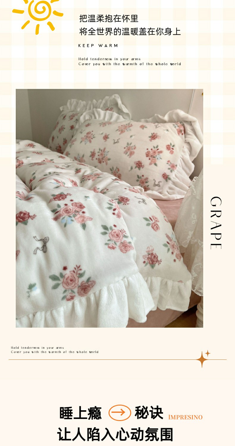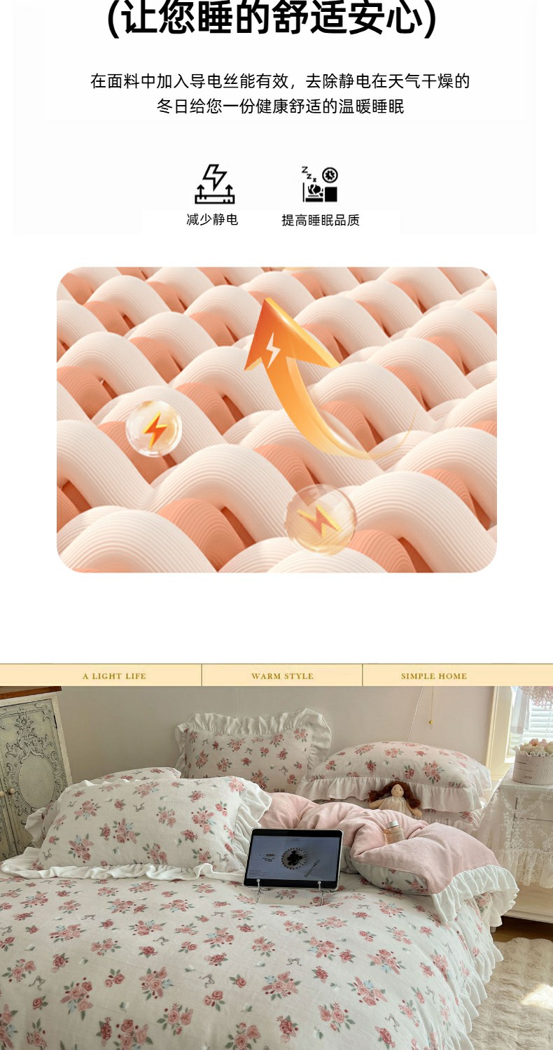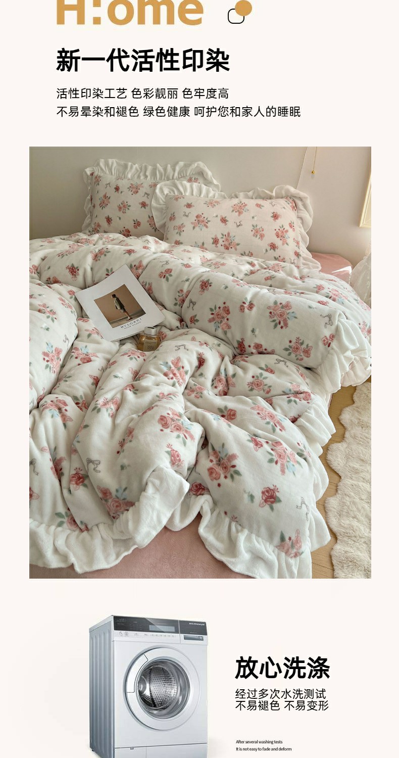 当前位置: 91家纺网 > 商品网购 > 床品套件 > 四件套 > 牛奶绒四件套 > 六巷胡同 2025新款韩式博主风花边款小碎花A类牛奶绒四件套 花边云屿桃记