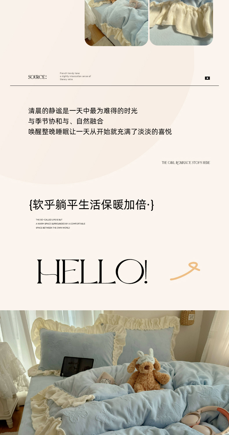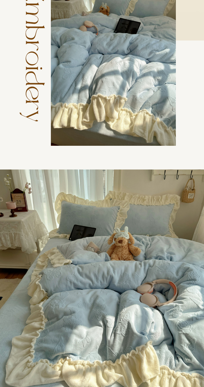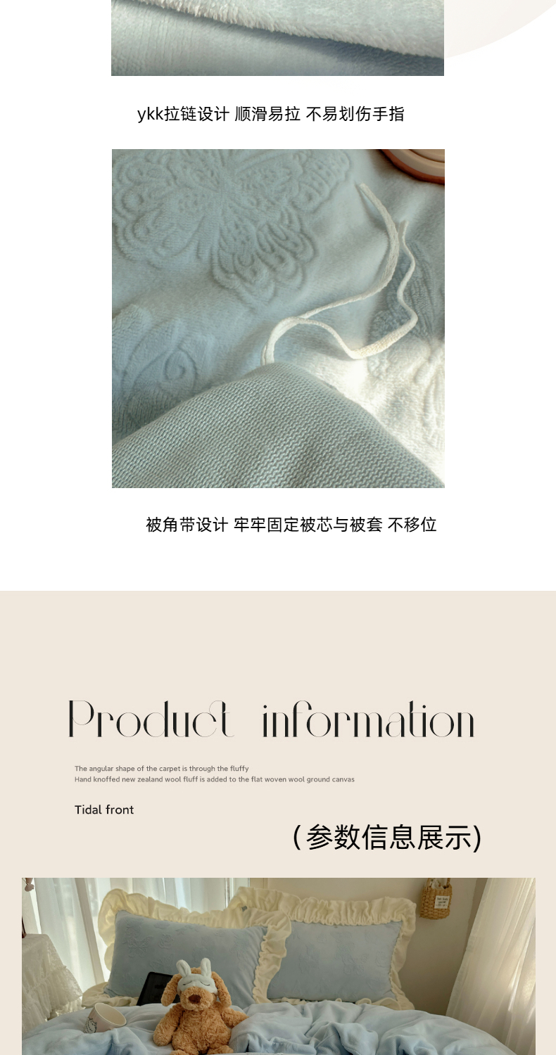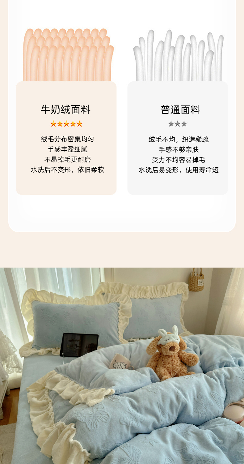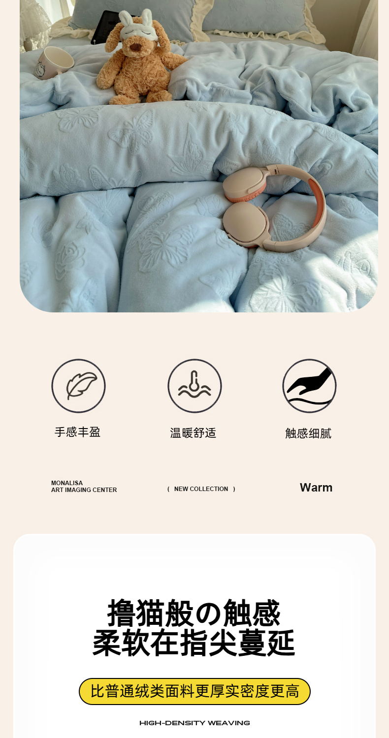当前位置: 91家纺网 > 商品网购 > 床品套件 > 四件套 > 牛奶绒四件套 > 六巷胡同 2025新款韩版花蝶仙踪A类全消光牛奶绒花边四件套 花蝶仙踪-湖水蓝