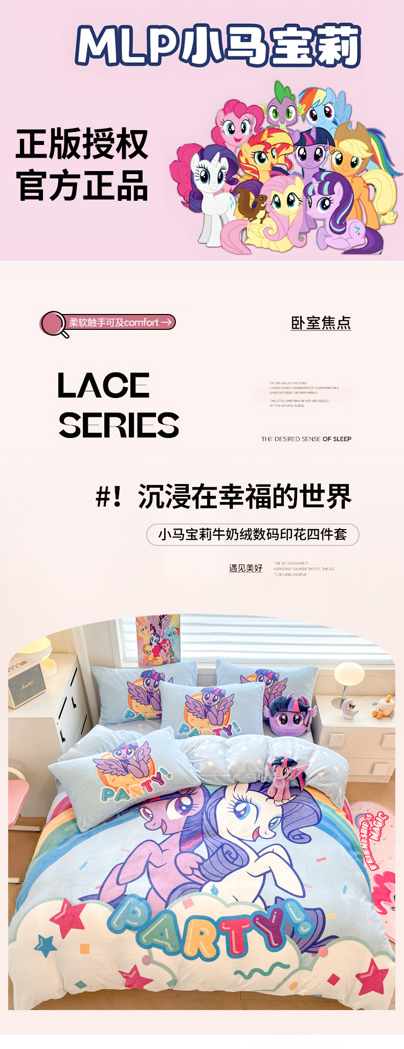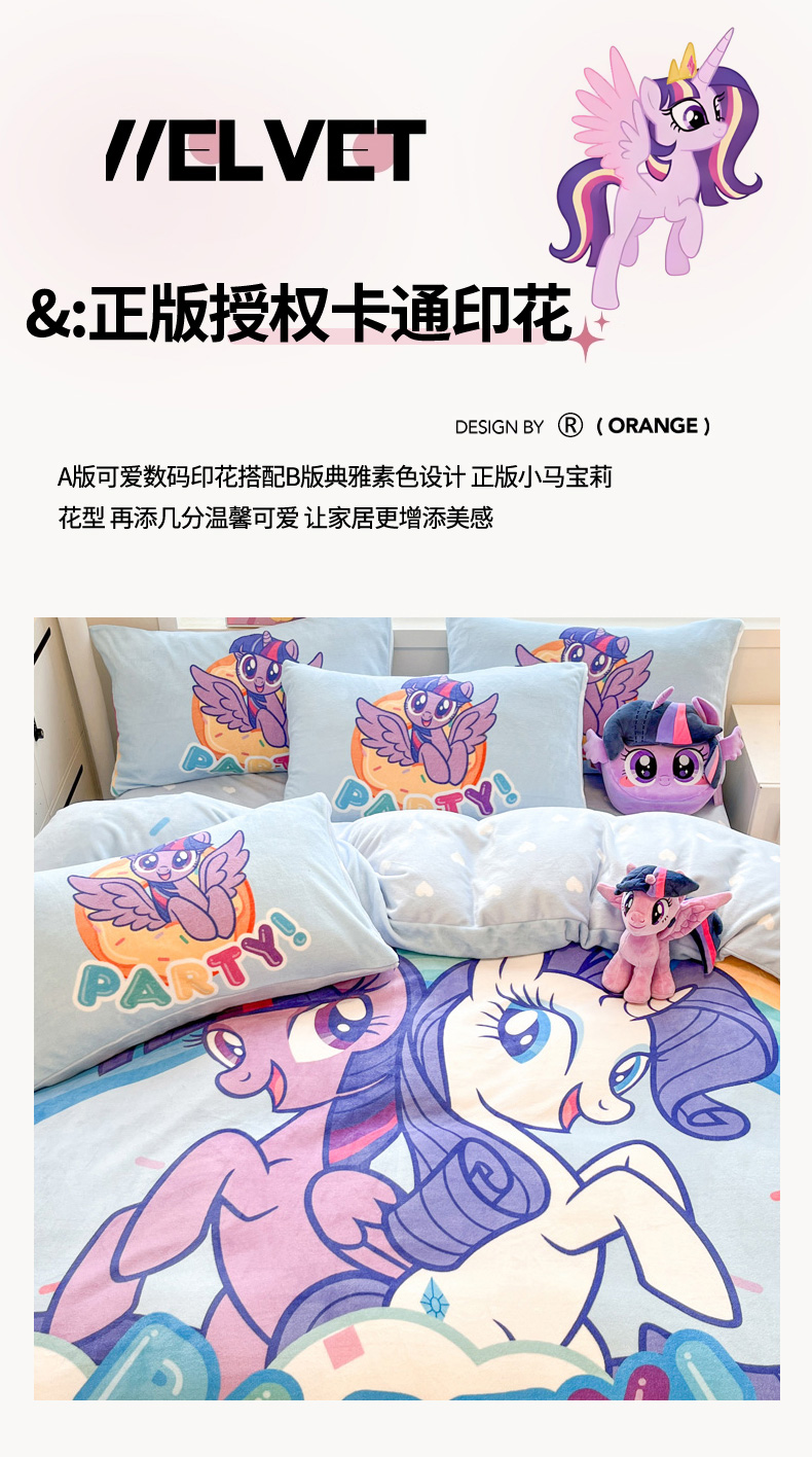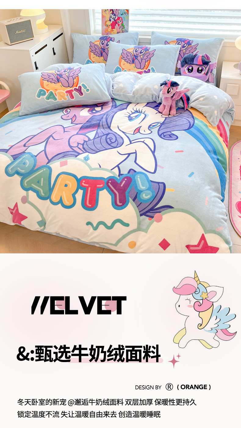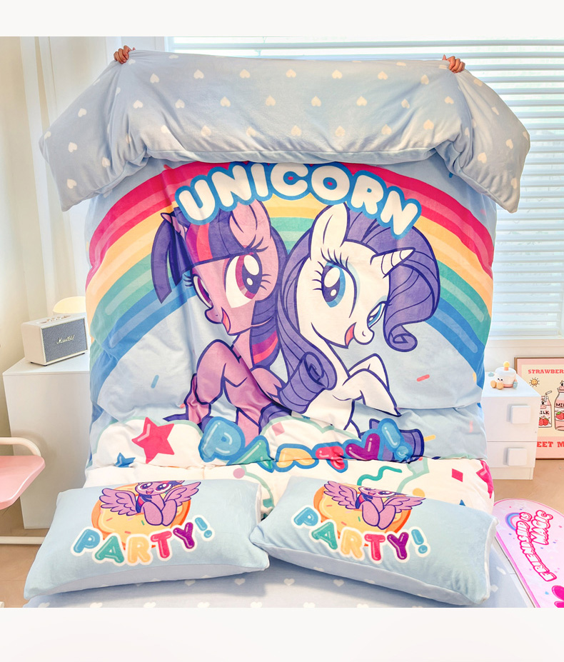 当前位置: 91家纺网 > 商品网购 > 床品套件 > 四件套 > 牛奶绒四件套 > 暮思家居 2025新款正版授权小马宝莉大阪数码印花高克重加厚保暖牛奶绒四件套 绒大版-彩虹宝莉