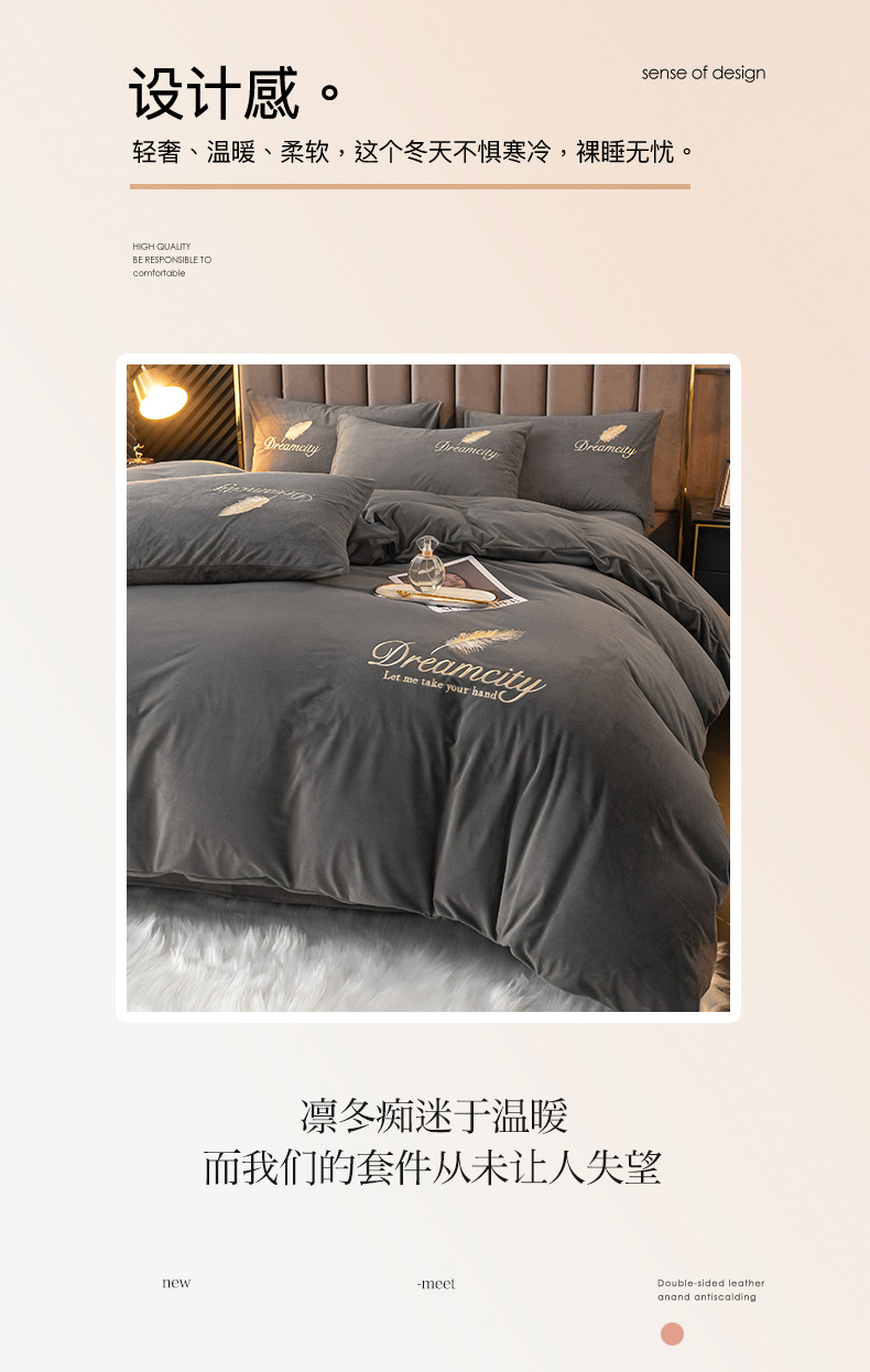 当前位置: 91家纺网 > 商品网购 > 床品套件 > 四件套 > 水晶绒四件套 > 如一 2025新款水晶绒刺绣四件套 轻羽-高级灰