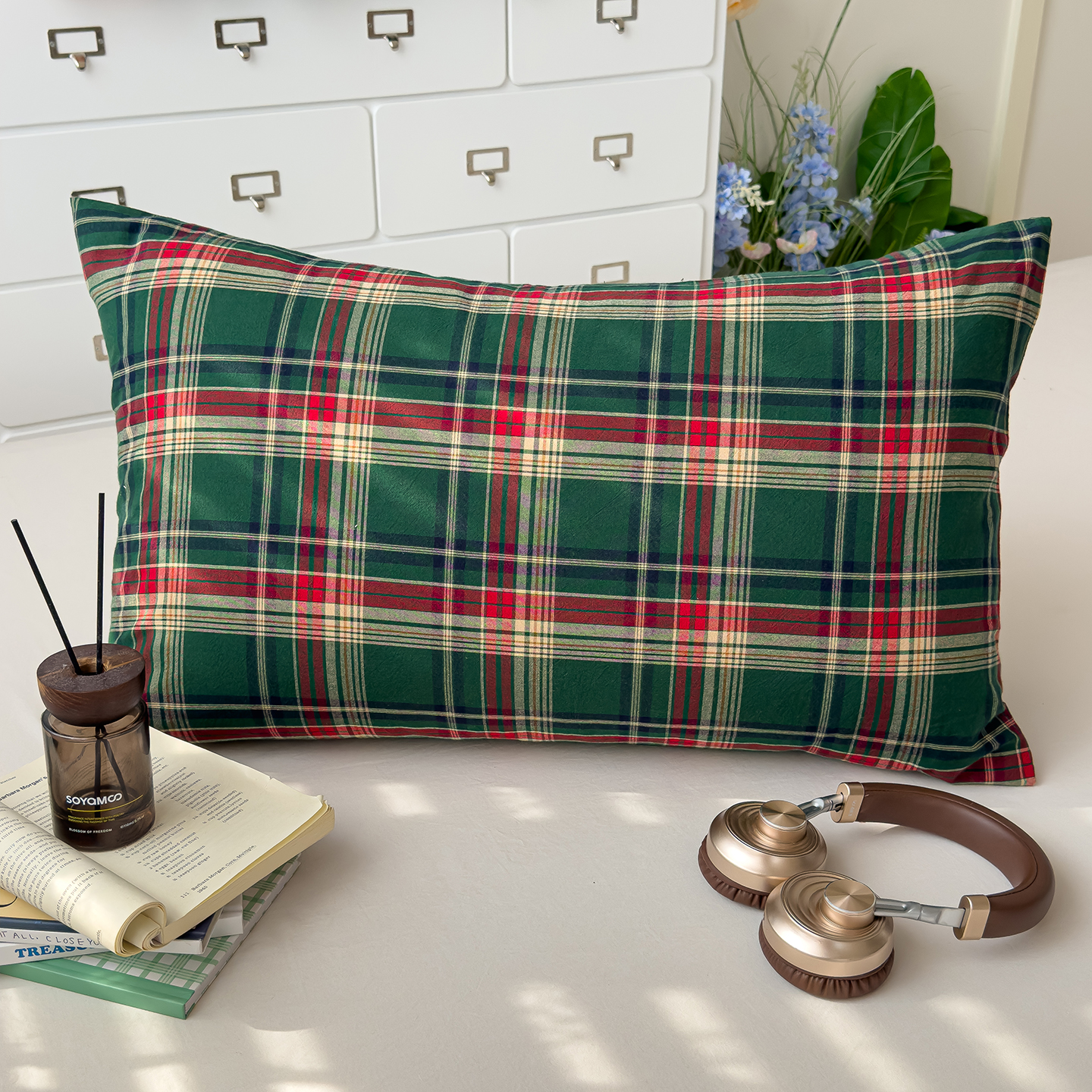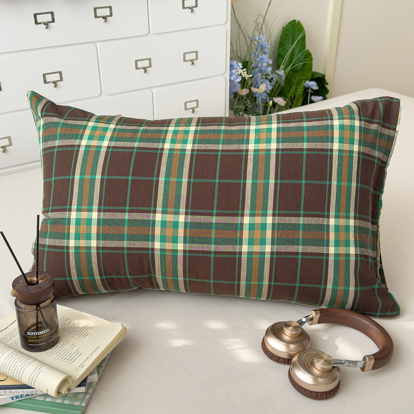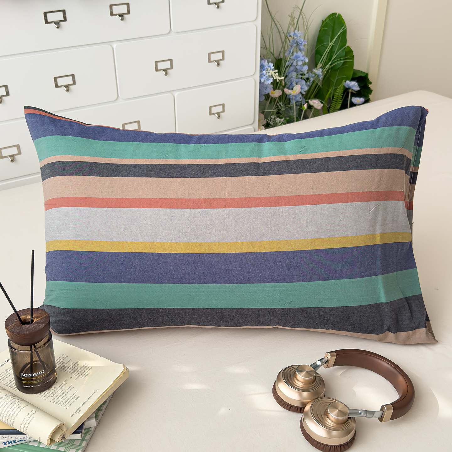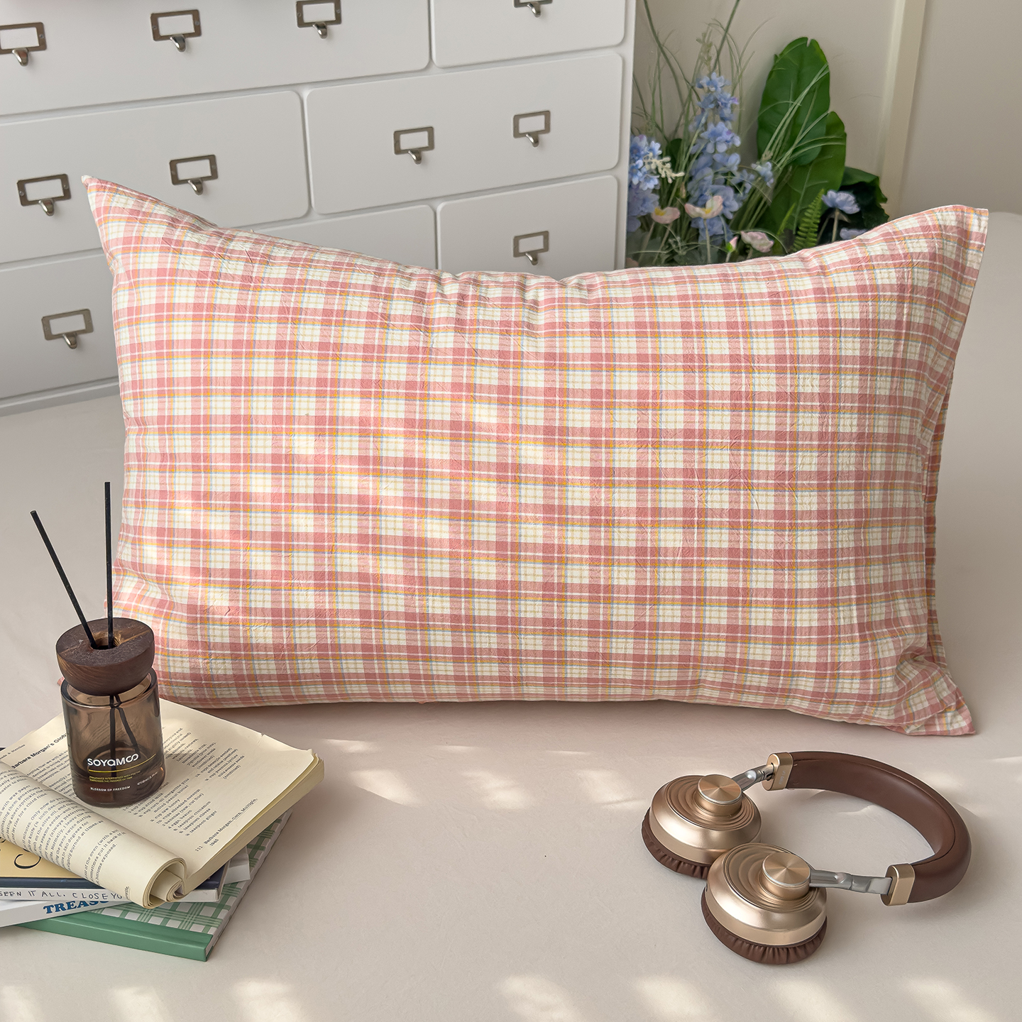商品名称:对白 2025新款全棉色织水洗棉单品枕套 西西里-蓝格