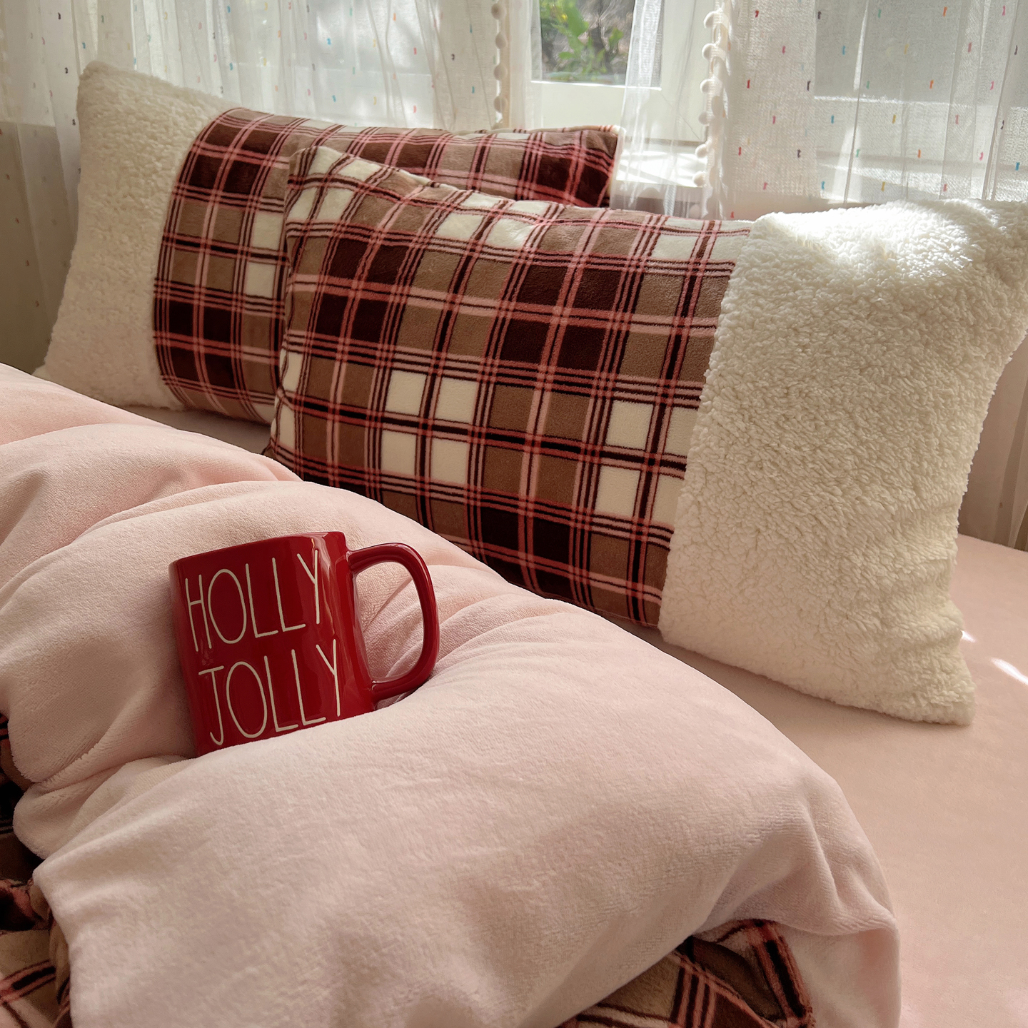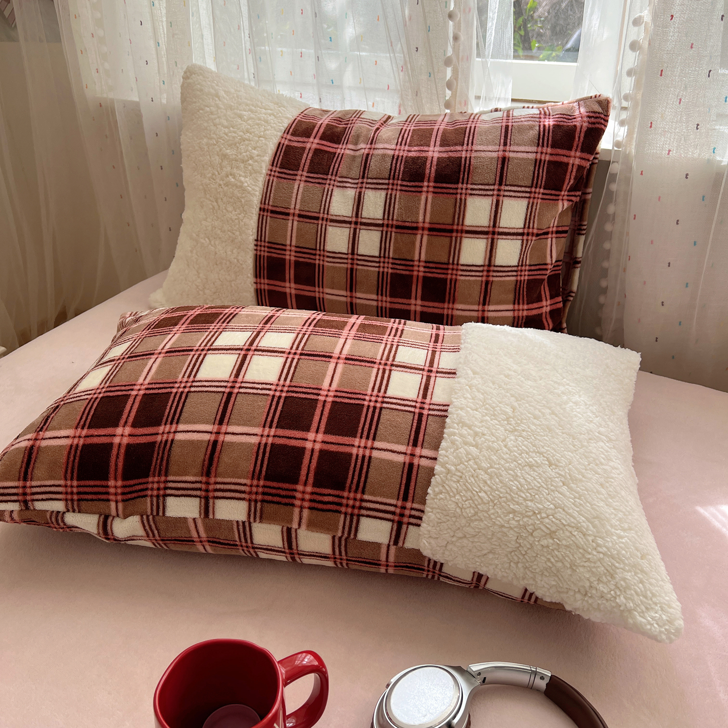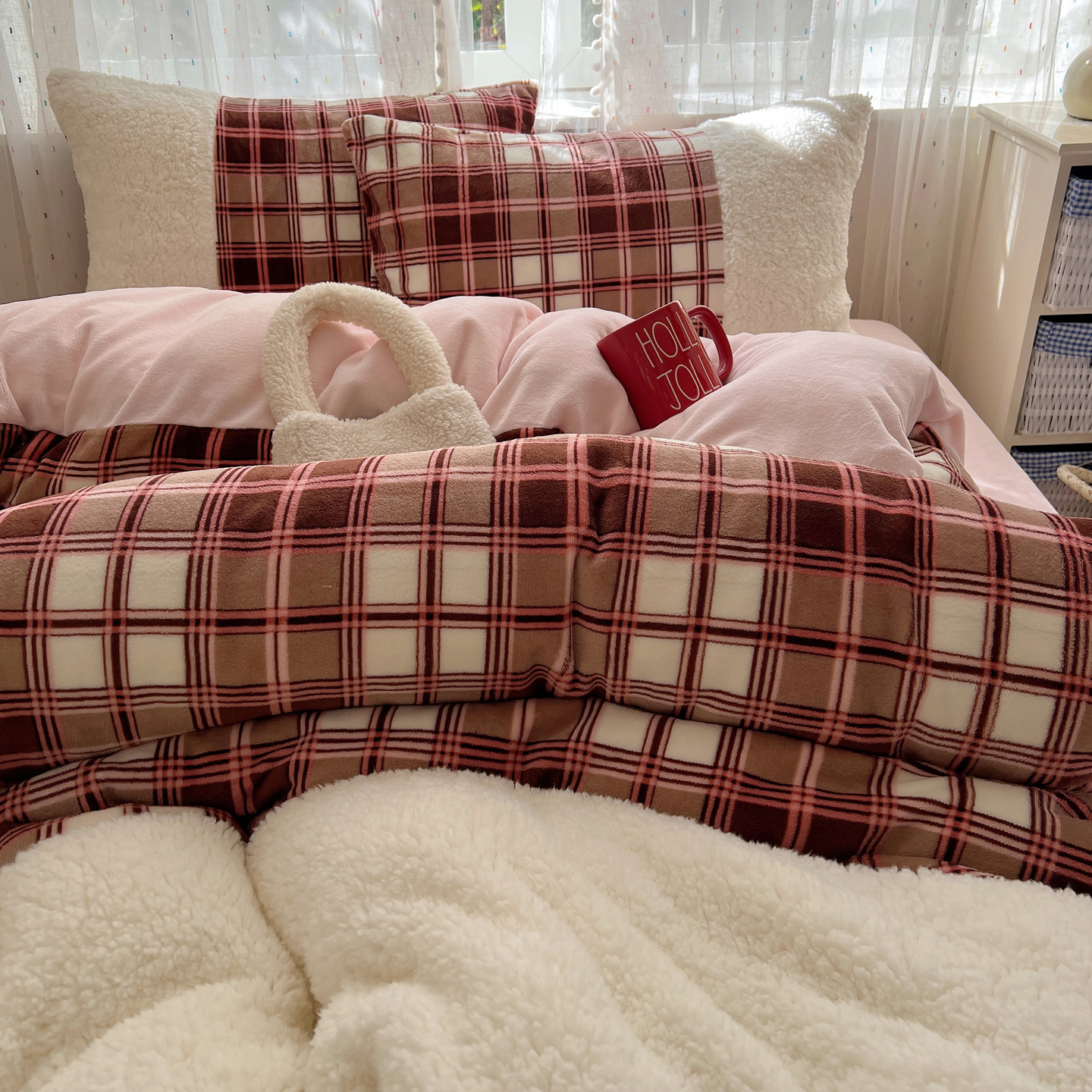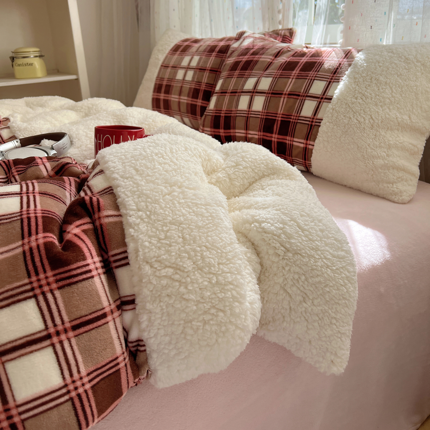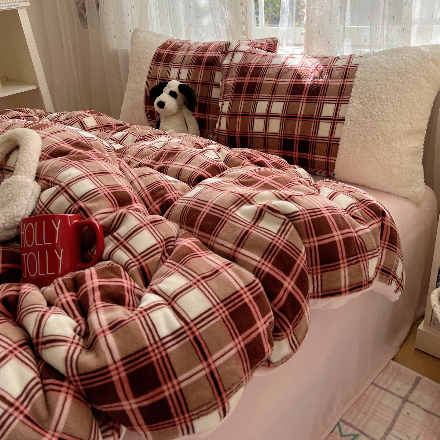 商品名称:顾里家纺 2025新款复古博主风高克重羊羔毛拼接牛奶绒套件 苏格物语