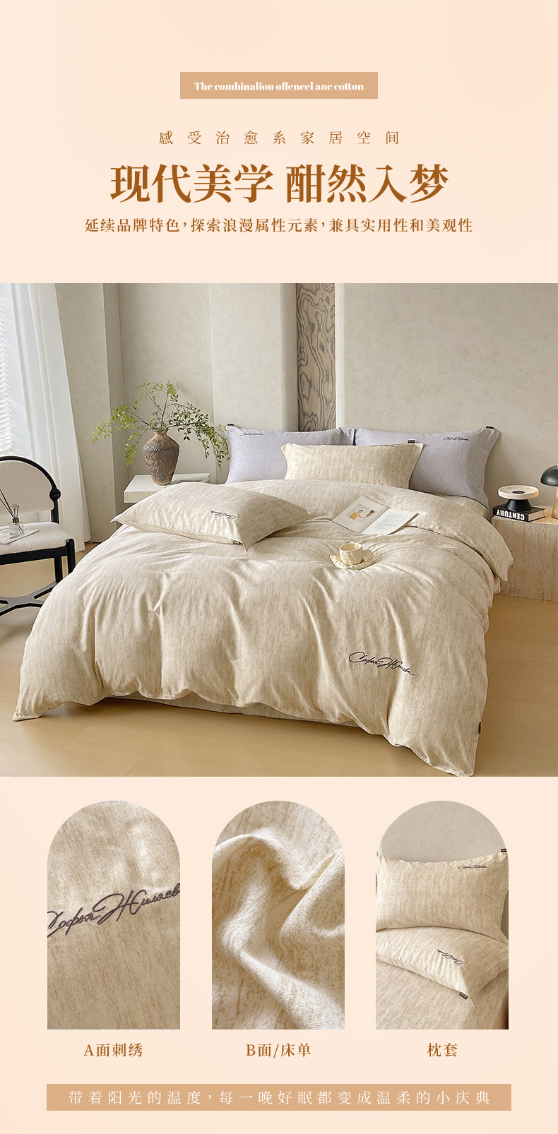 春皖家纺 2025新款棉天丝纯色刺绣四件套单品系列-四件套 亮绮黄