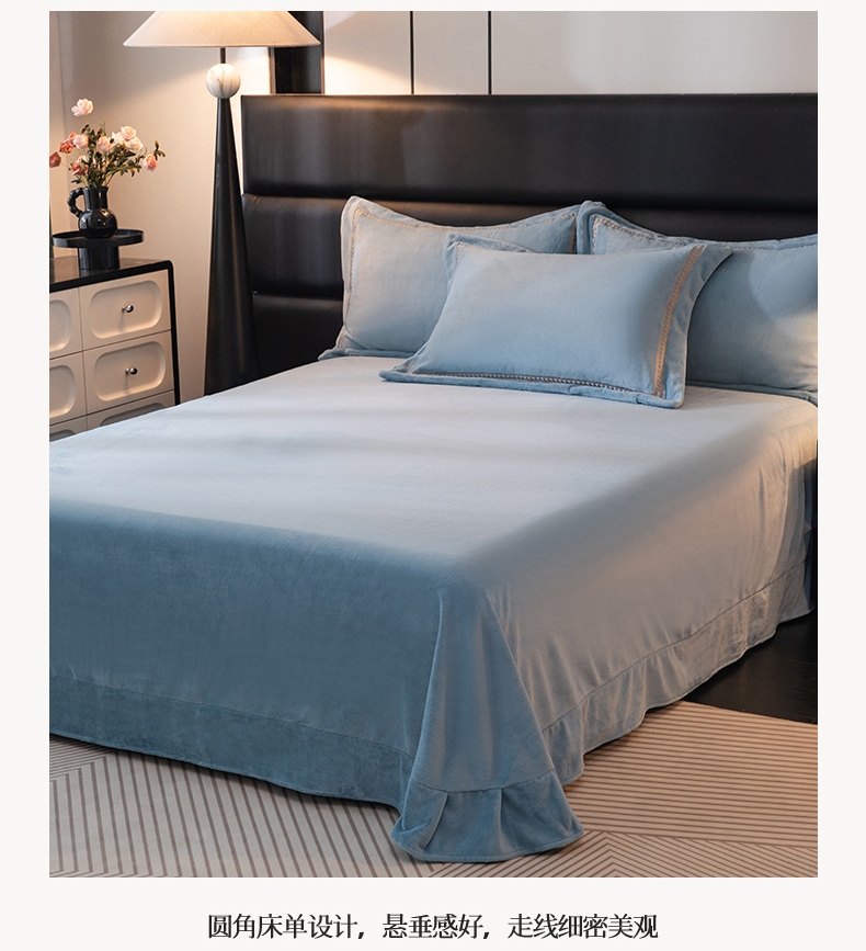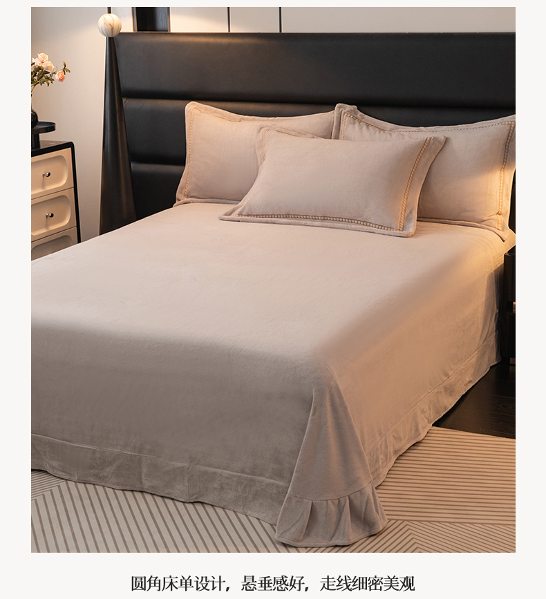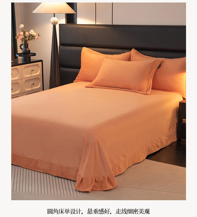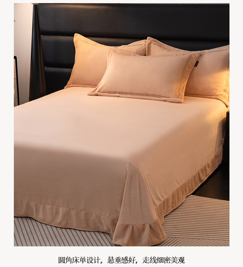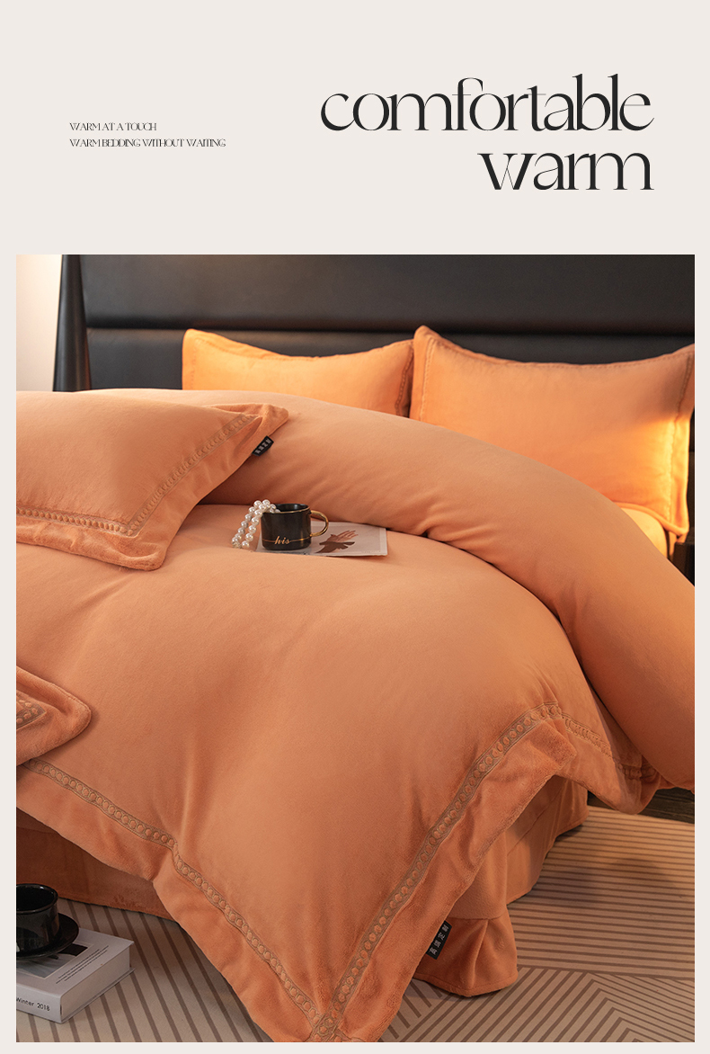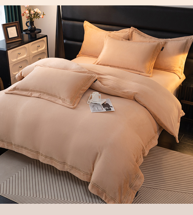 (总)暖洋 2025新款240克高克重全工艺纯色织带花边款牛奶绒四件套,枫糖橙,卡其紫,米奇,柔草绿,绅士灰,天空蓝,樱花粉,云锦红