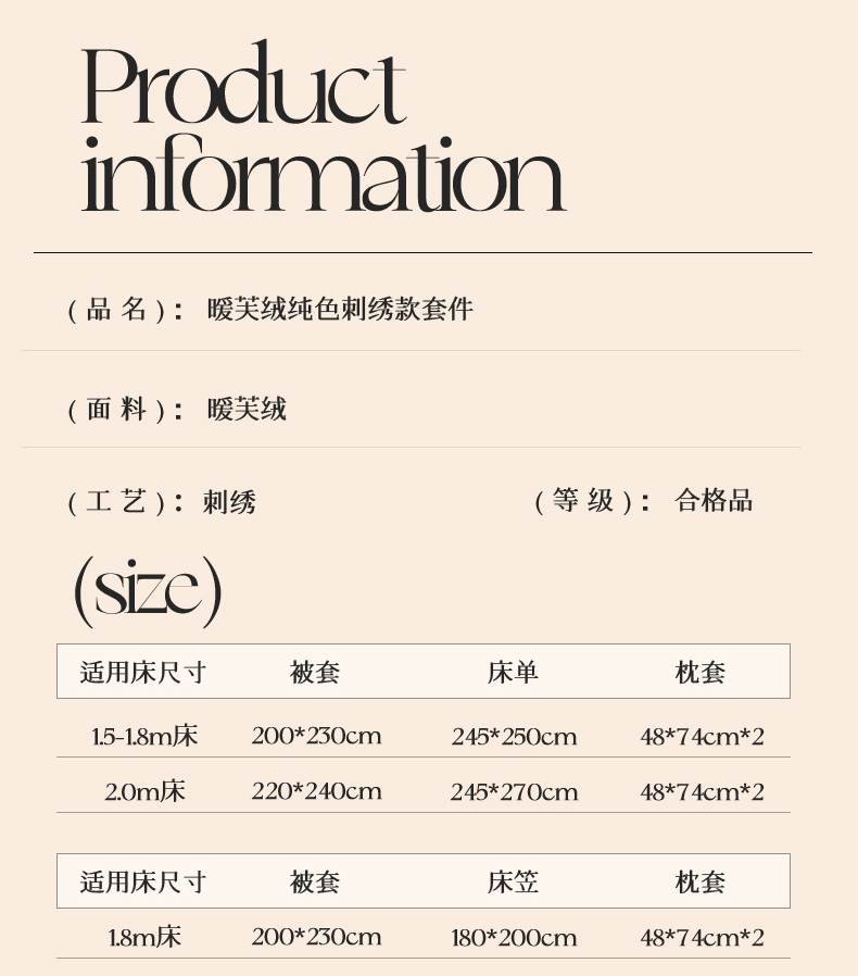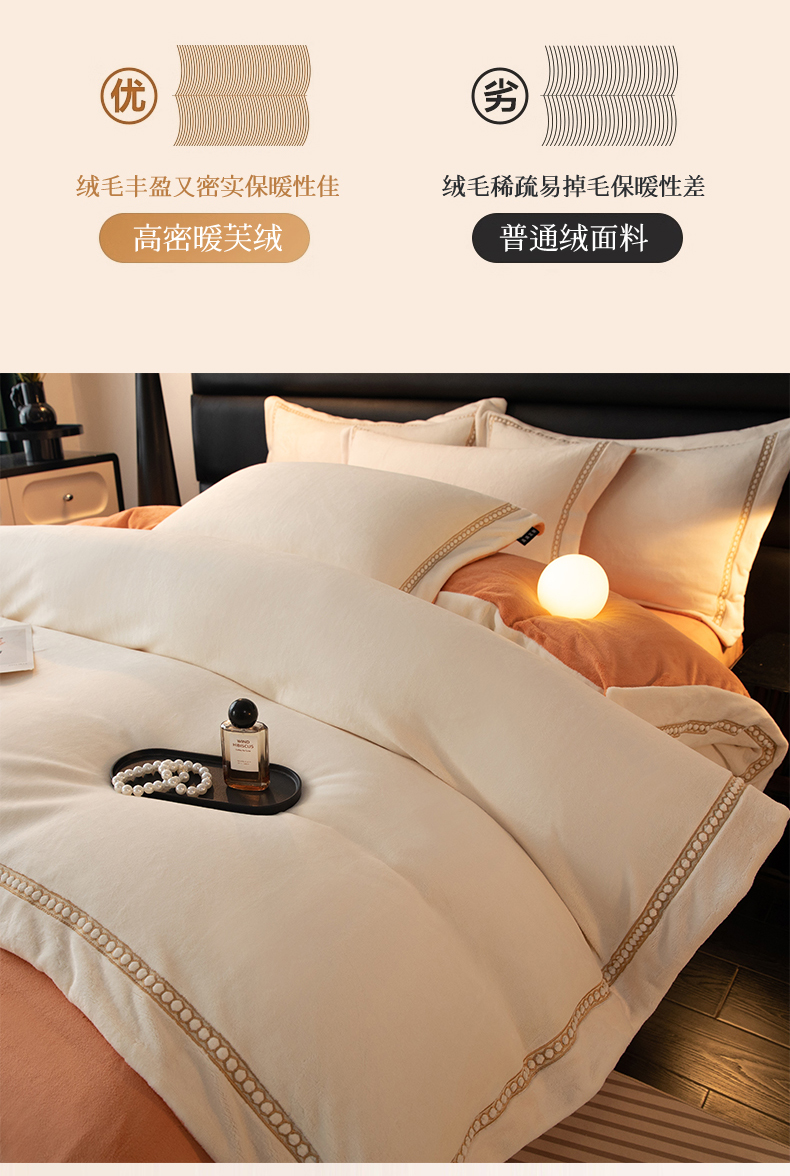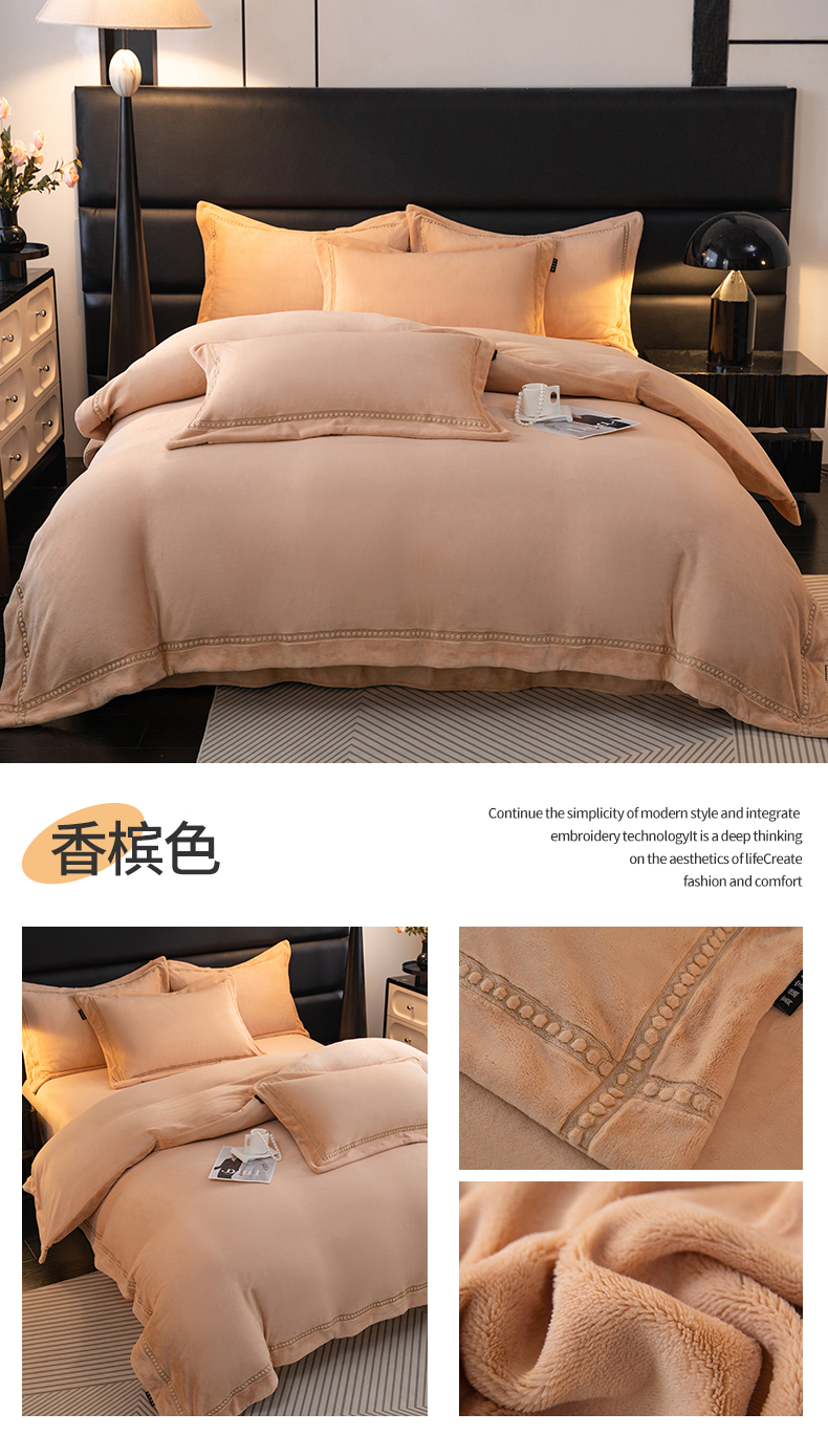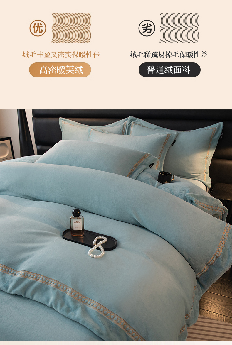 商品名称:(总)暖洋家纺 2025新款暖芙绒纯色刺绣款套件四件套