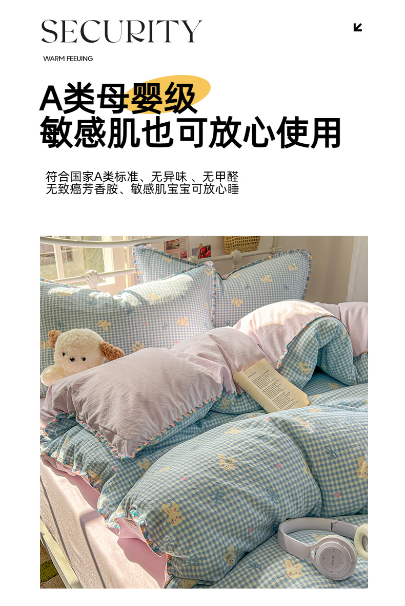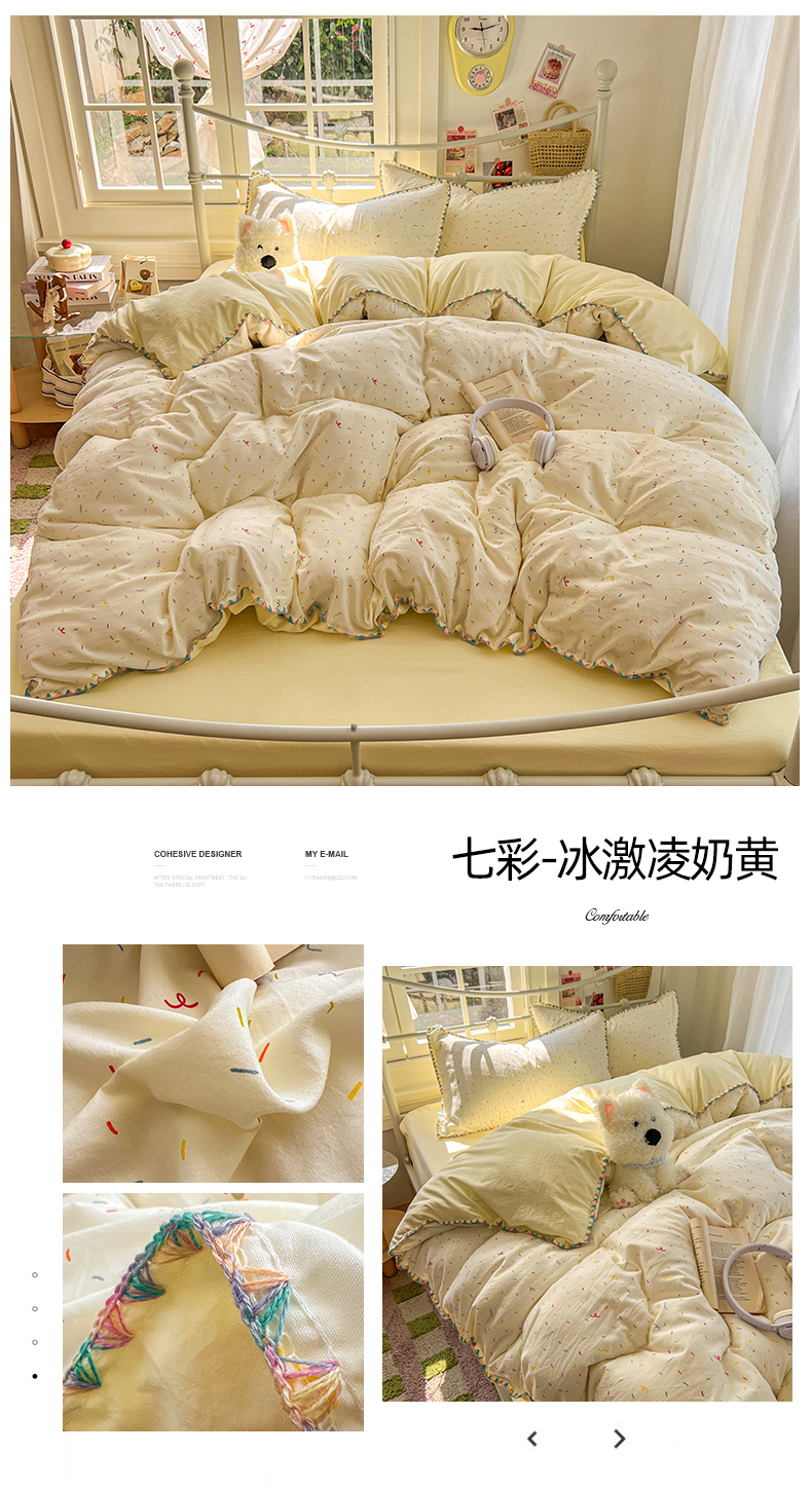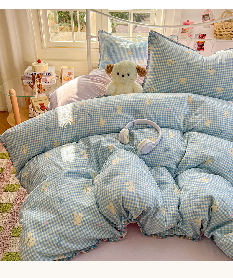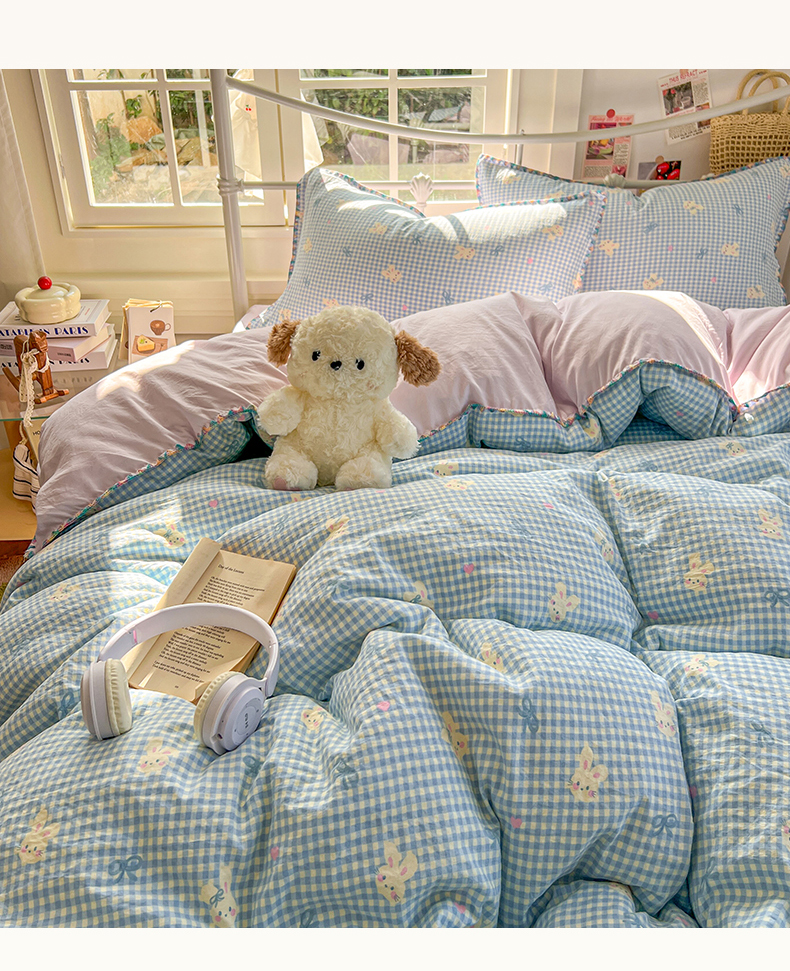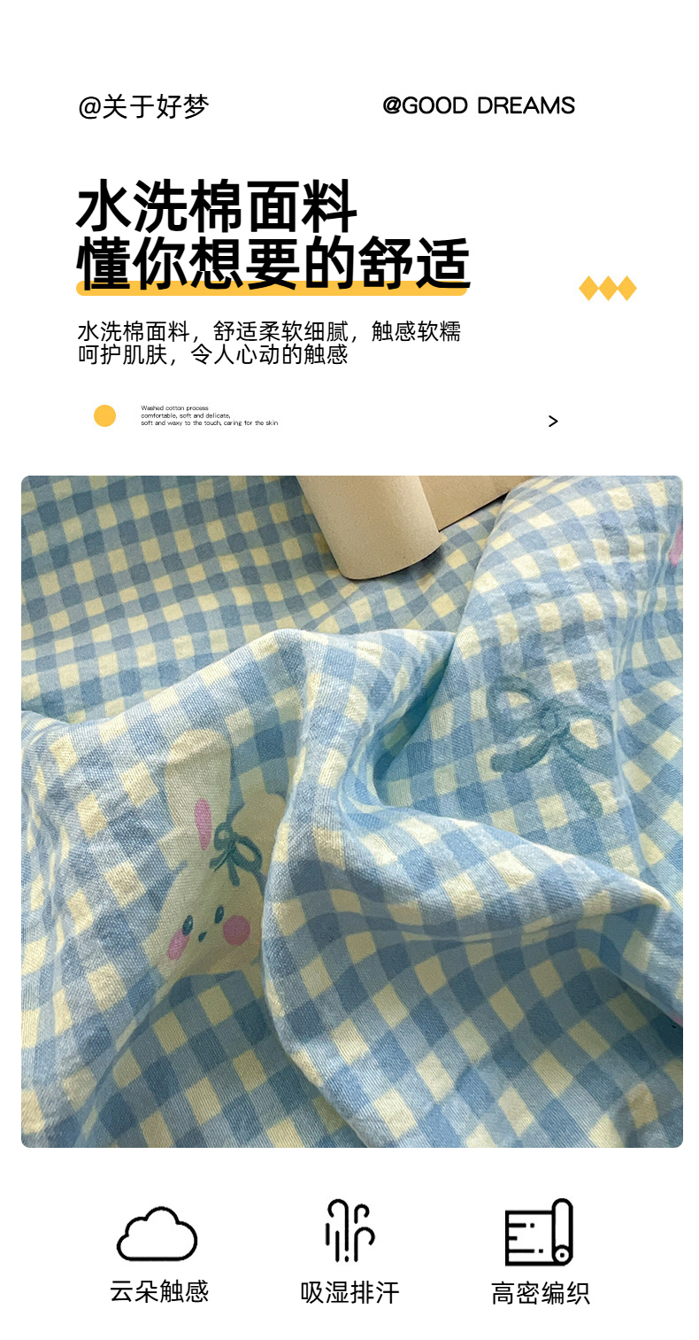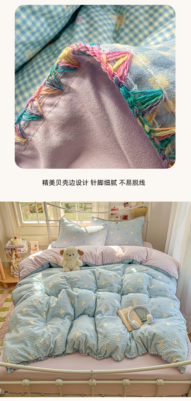 当前位置: 91家纺网 > 商品网购 > 床品套件 > 四件套 > 水洗棉四件套 > 冕悠家纺 2026新款超柔软卡通七彩贝壳边水洗棉四件套 提供买家秀 七彩-兔兔奶紫
