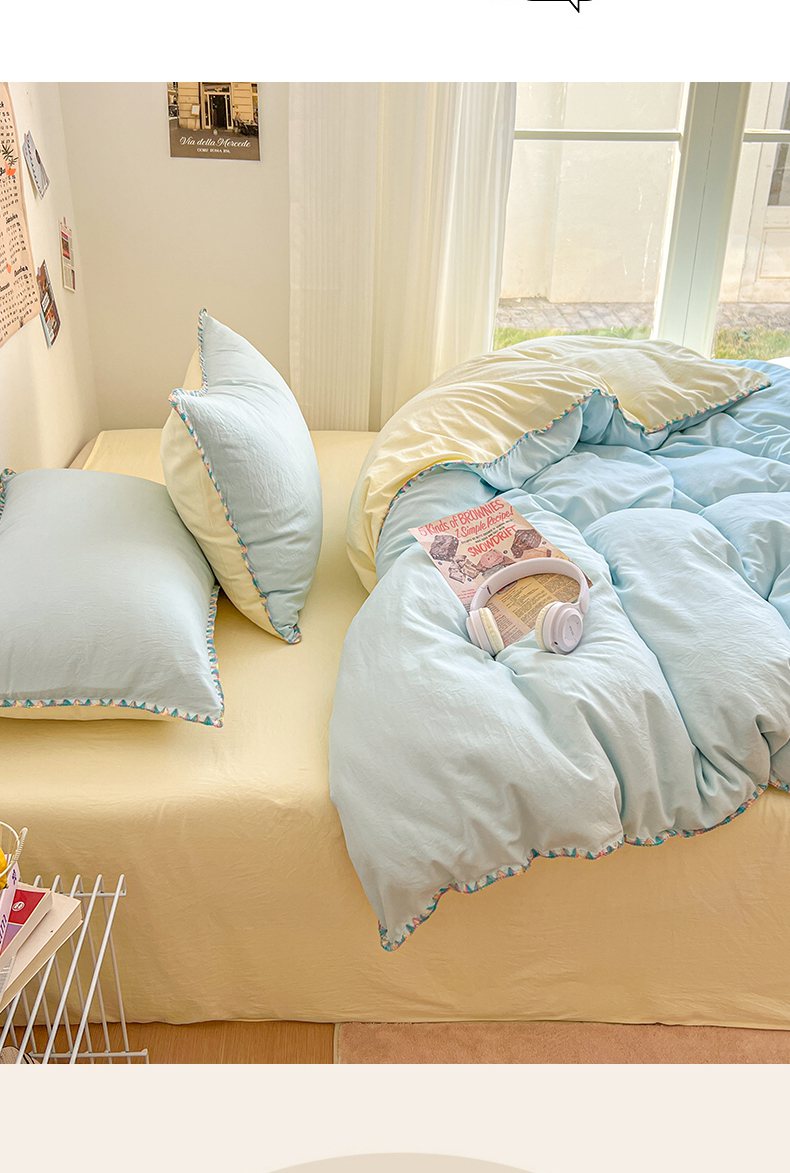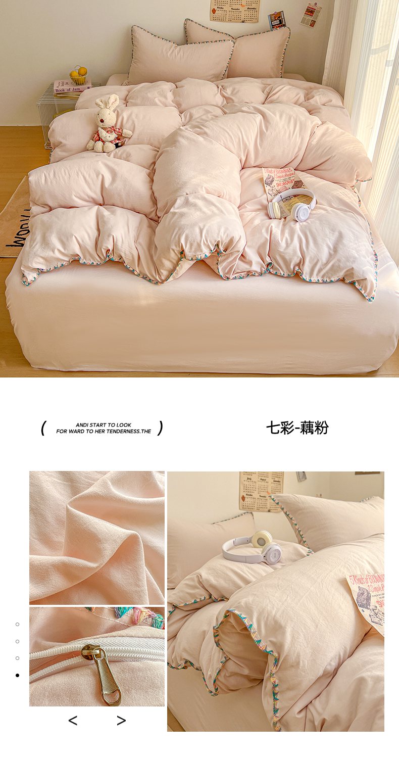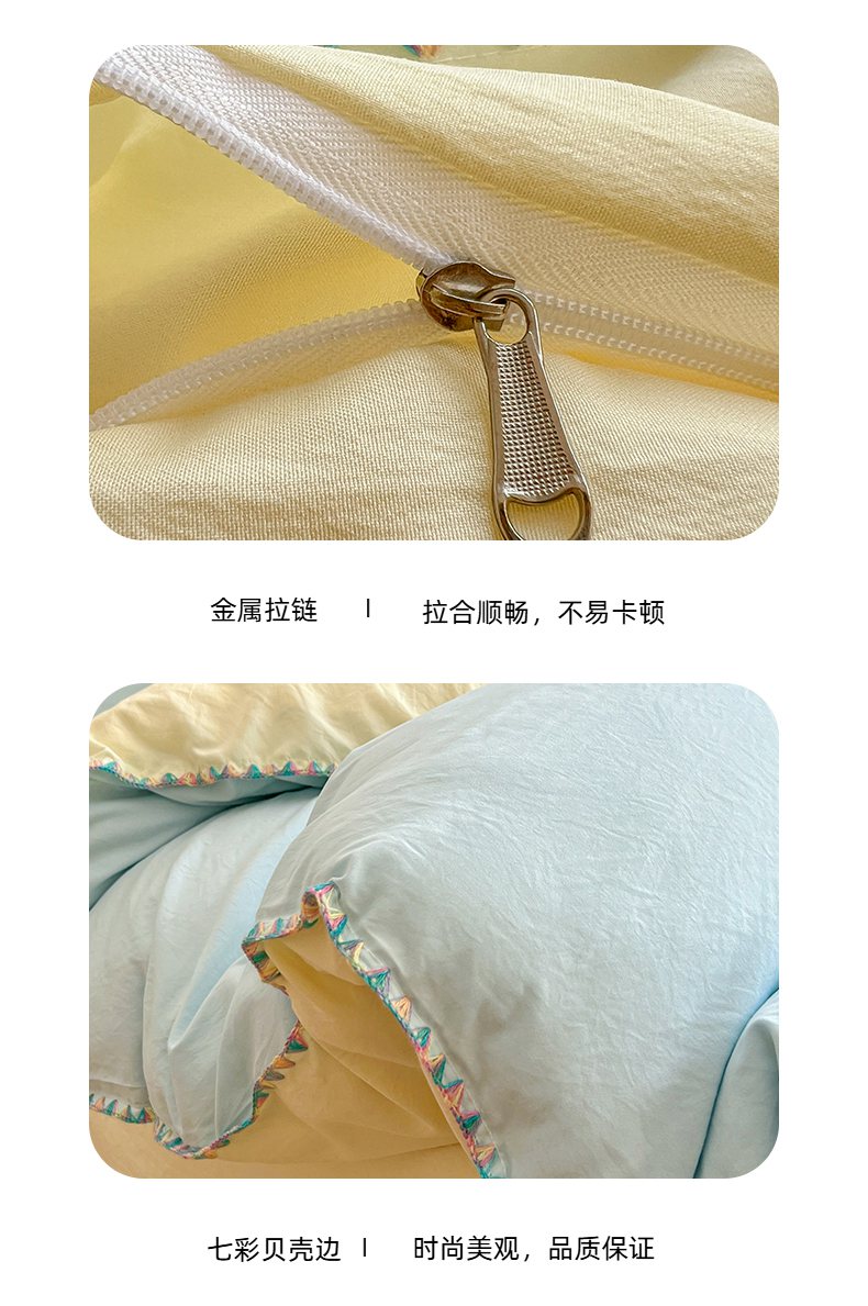 当前位置: 91家纺网 > 商品网购 > 床品套件 > 四件套 > 水洗棉四件套 > 冕悠家纺 2025新款A类七彩贝壳边水洗棉四件套-加微信提供买家秀2 七彩-芝士云水蓝