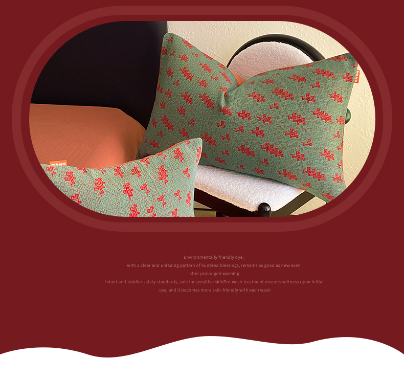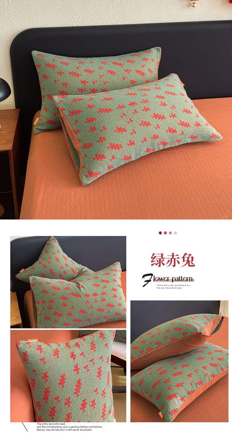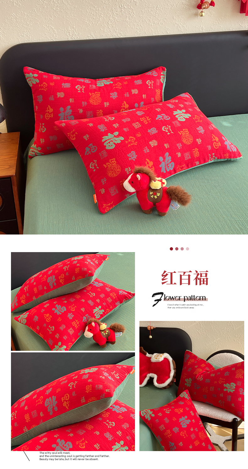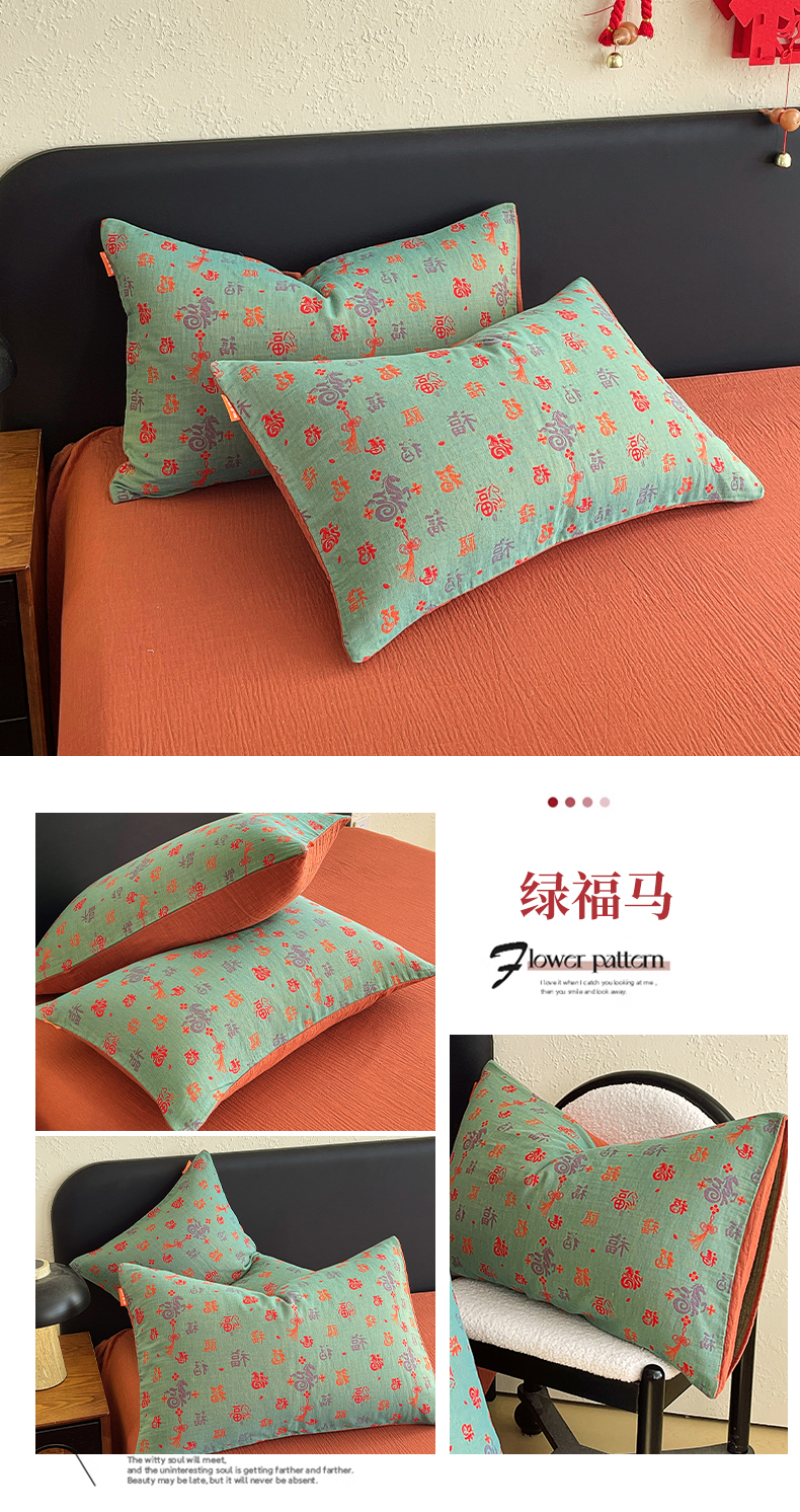 春皖家纺 2026新款全棉色织双层纱提花百福系列拉链款-单枕套 绿赤兔