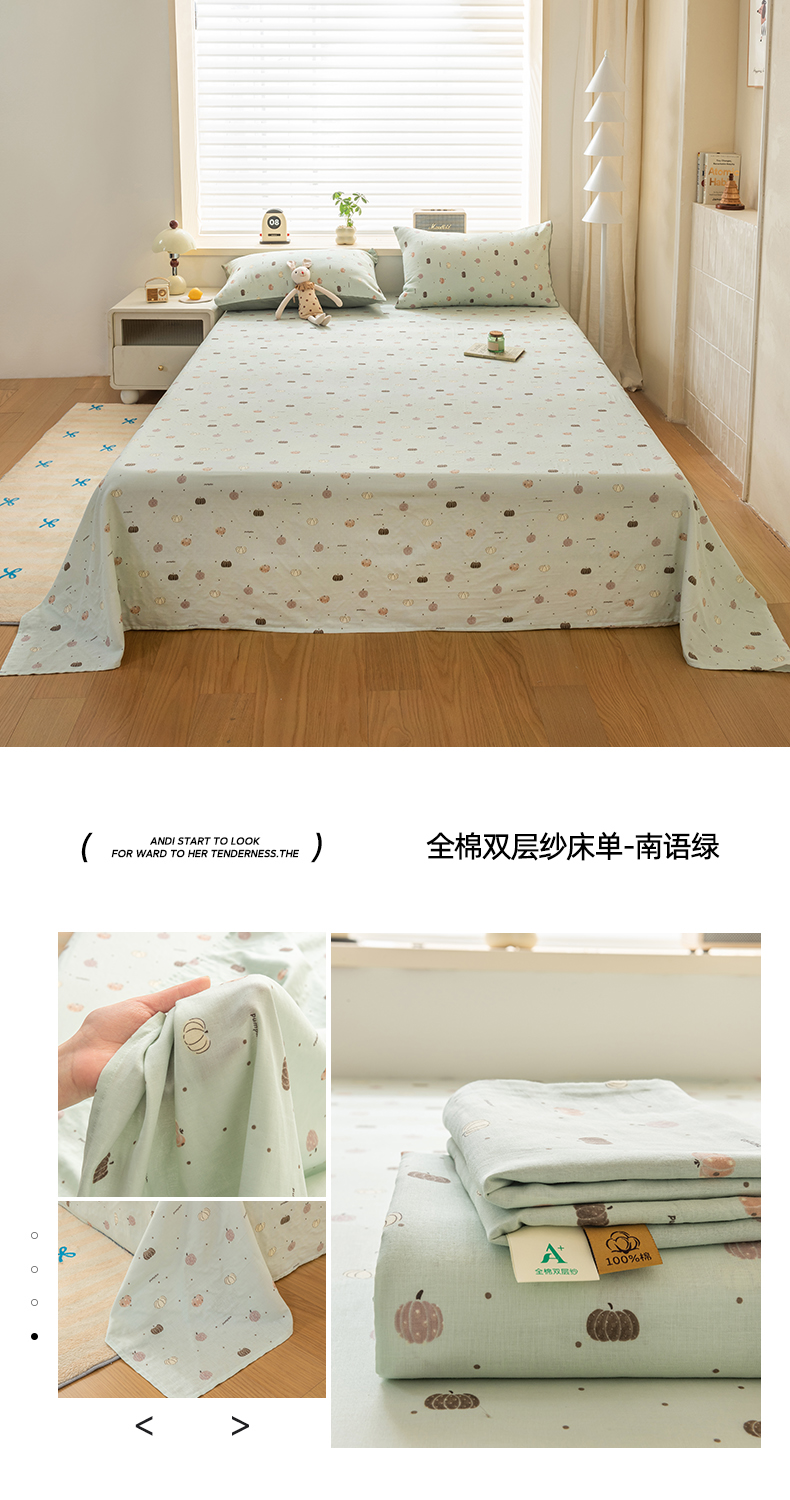 雯雨家纺 2026新款全棉有氧双层纱床单 全棉双层纱床单-田园小熊
