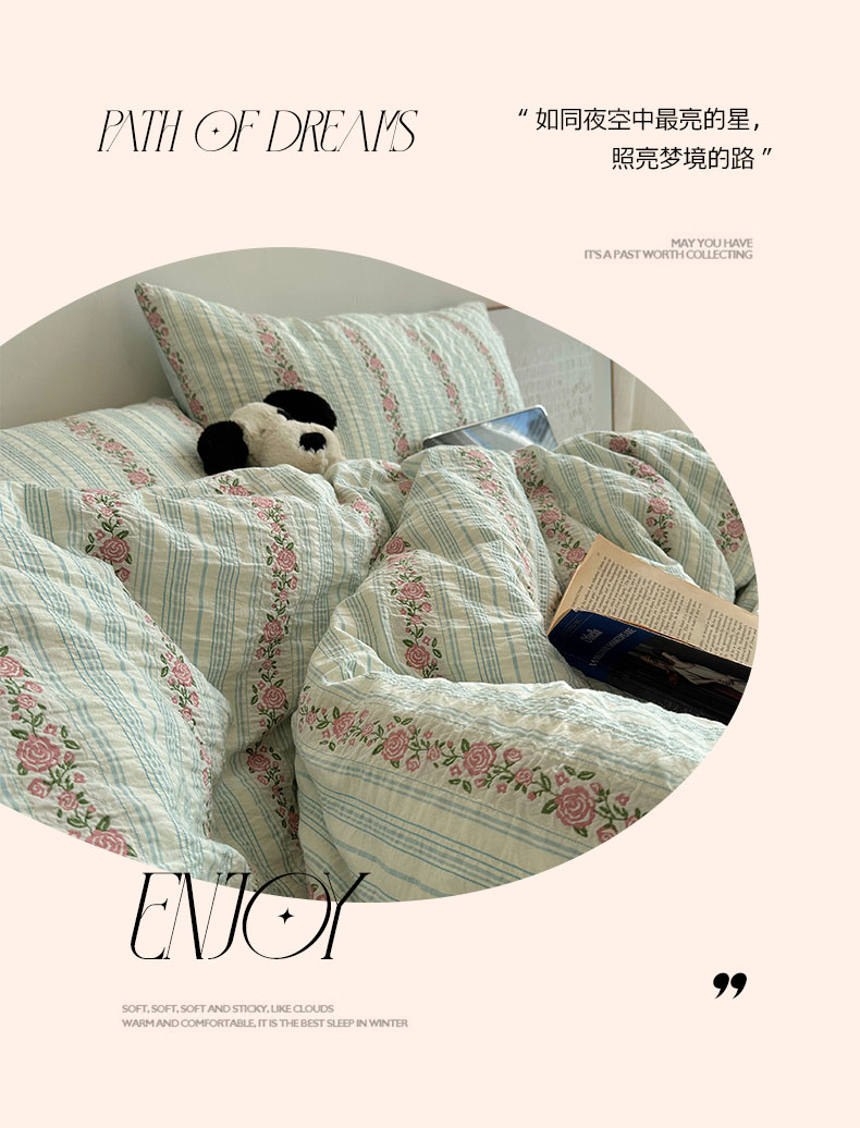 当前位置: 91家纺网 > 商品网购 > 床品套件 > 四件套 > 全棉普通四件套 > (总)六巷胡同 2026新款韩系INS博主风40S全棉色织提花四件套