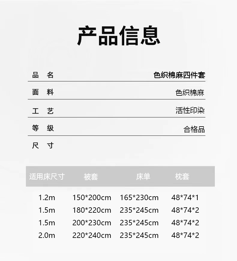当前位置: 91家纺网 > 商品网购 > 床品套件 > 四件套 > 其它四件套 > 金梦拉家纺 2026新款色织棉麻棉纱小露麻四件套 兰织梦